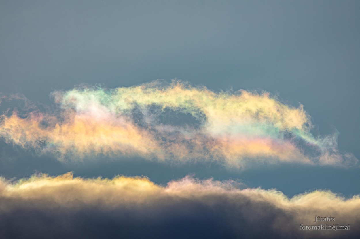 Trečiadienį popiet užfiksuotas optinis atmosferos reiškinys – debesų irizacija. Kartais tai būna sumaišoma su vaivorykšte arba perlamutriniais debesimis. Pastarieji Lietuvoje nepasirodo, tačiau žiemą kartais fiksuojami virš Skandinavijos ir Islandijos.