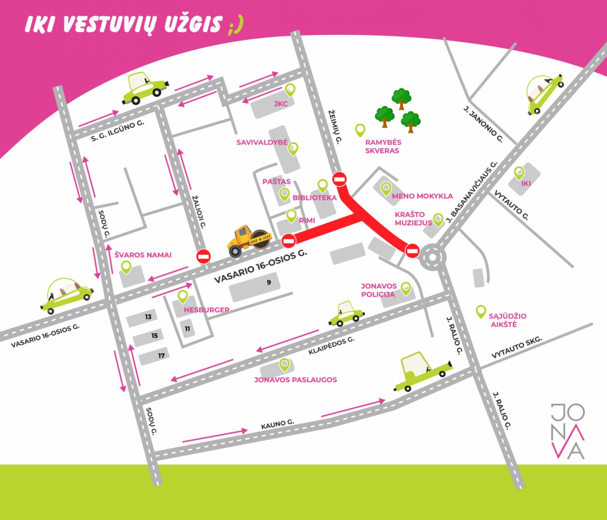 Informuojame gyventojus, kad liepos 1-ąją prasidės žiedinės sankryžos įrengimo darbai Vasario 16-osios ir Žeimių gatvių sankirtoje. Dėl to šioje sankryžoje bus uždaromas eismas pagal pridedamą eismo organizavimo schemą.