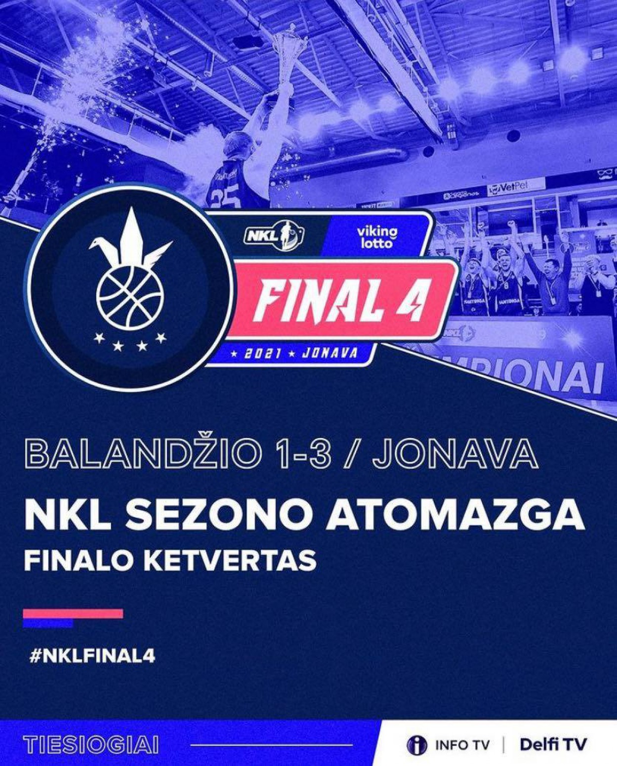 NKL – VIKINGLOTTO 2020-2021 metų sezono finalo ketvertas vyks Jonavos sporto arenoje. Šiemet sezoną vainikuosiančios lemiamos kovos truks tris dienas – finalo ketvertas bus surengtas balandžio 1-3 dienomis.