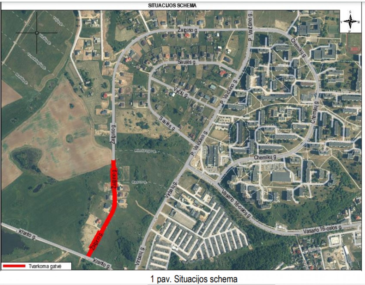 Projektu tvarkomos Žalgirio gatvės atkarpos pradžia – ties žemės sklypu Mindaugo g. 13, pabaiga – sankryža su Kranto gatve. Numatomas gatvės plotis 6,0 m. Gatvės eismo juostų skaičius – 2, eismo juostos plotis – 3,00 m. Gatvės plotis parinktas atsižvelgiant į esamą, jau sutvarkytą Žalgirio gatvės atkarpą su asfaltbetonio danga. Projektuojama gatvės danga – pilkos spalvos asfaltas.