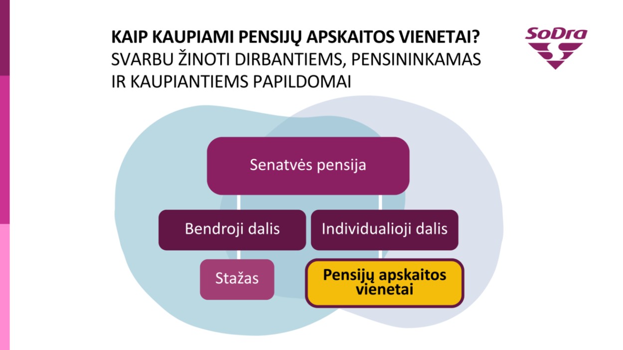 Pensijų apskaitos vienetai svarbūs ne tik tiems, kurie dar dirba ir planuoja savo finansinę ateitį pensijoje. Jie aktualūs ir dabartiniams pensijų gavėjams, taip pat žmonėms, svarstantiems pasitraukti iš antros pensijų kaupimo pakopos. Pastariesiems kyla praktinis klausimas – kiek papildomų apskaitos vienetų bus įgyta už į „Sodrą“ pervedamas lėšas.