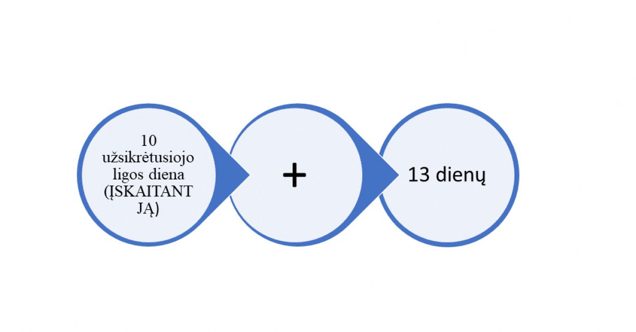 Dėl to tokiu atveju vienam iš tėvų izoliacija bus skaičiuojama pagal formulę 10+13, t. y. nuo gruodžio 21 d. iki sausio 11 d. imtinai.