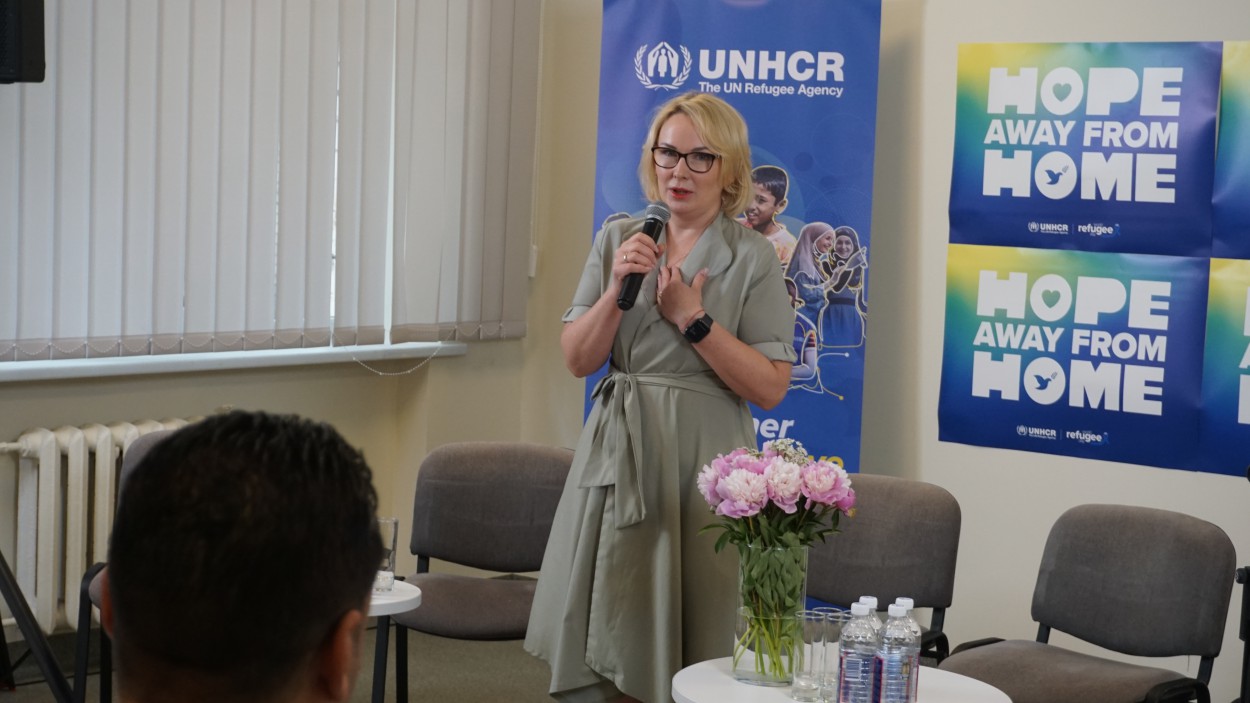 „Pasaulinė pabėgėlių diena iš tikrųjų yra skirta atkreipti dėmesį į stiprybę ir į drąsą tų žmonių, kurie dėl konfliktų, persekiojimų ir smurto buvo visgi priversti palikti savo namus. Mes turėtume pasakyti ir turėti omenyje, kad kai kalbame apie pabėgėlius, mes kalbame apie labai stiprias asmenybes ir apie labai drąsias asmenybes. Šios Pasaulinės pabėgėlių dienos tema yra „Viltis toli nuo namų“, ką jūs ir matote plakatuose už nugaros ir taip pat kviečiame visus kartu siekti pasaulio, kuriame pabėgėliai įtraukti ir dalyvauja. Galbūt tai yra dar ne mažas kelias iki to nueiti, bet kaip visada gera pradžia yra pusė kelio.“ - teigė Renata Kuleš, Jungtinių tautų pabėgėlių agentūros (UNHCR) atstovė Lietuvoje. R. Kuleš taip pat pasidalijo pabėgėlių statistikos tendencijomis pasaulyje: „Deja turime konstatuoti, kad nemažai metų iš eilės mes turime vis didėjančią tendenciją, kuomet pasaulyje žmonių, kurie buvo priversti palikti savo namus skaičius auga. Mūsų išleistoje ataskaitoje nurodoma 108 mln. pabėgėlių, tai įsivaizduokime kažkur apie Filipinų dydžio valstybę ir kad pasaulyje 1 iš 74 žmonių šitoje planetoje buvo priverstas palikti savo namus dėl konflikto, smurto ir persekiojimo. Konfliktai, kurių mes nesugebame išspręsti, tai ir yra didžiausia priežastis labai didžiulio žmonių judėjimo iš savo šalių. Daugiau negu pusė pabėgėlių yra iš tokių šalių kaip Sirija, Afganistanas ir Ukraina. Galimybė spręsti konfliktus, kad žmonės galėtų saugiai grįžti ir auganti bendruomenė kartu su augančiu tarptautiniu solidarumu turėtų padėti tiems žmonėms ten, kur jie šiandien yra.”