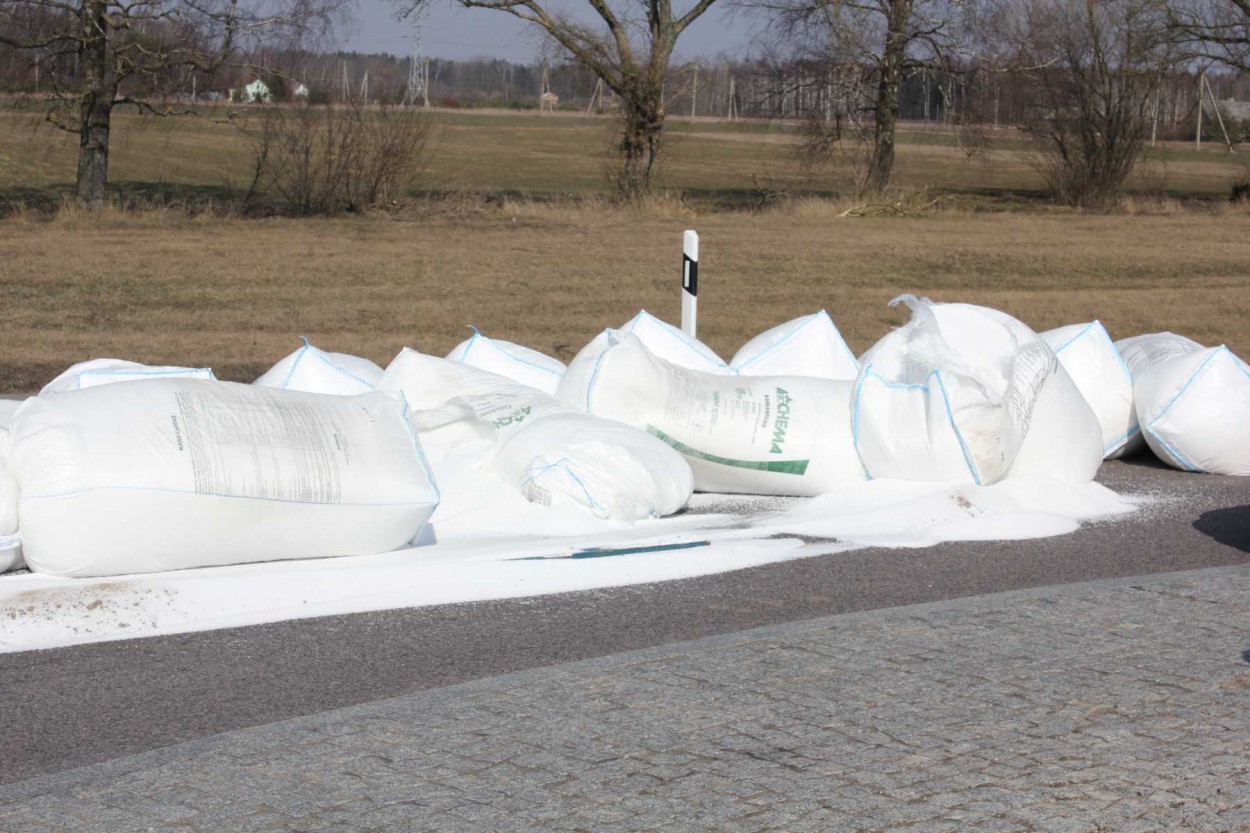 Anot įmonės, vežusios maišus, atstovų, pabiręs karbamidas nėra pavojingas aplinkai. Dalis maišų suplyšo, ir karbamidas pabiro beveik ant važiuojamosios kelio dalies.