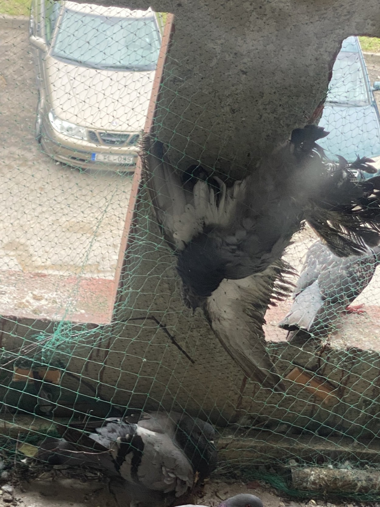 Rimkuose, P. Vaičiūno gatvės 4-jame name, antroje laiptinėje turime problemą: laiptinės balkonai uždengti tinklu, kuriame - mirštantys ir pūvantys balandžiai. Taip pat ir gyvų jų ten nemažai turim.