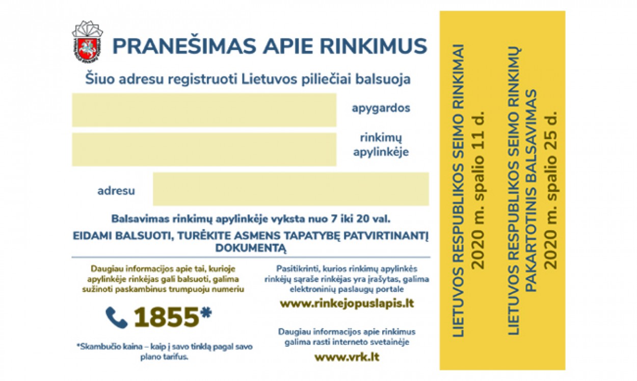 Atkreipiame dėmesį, kad rinkimų dienomis balsuoti į apylinkes atvykusiems rinkėjams pranešimo apie rinkimus atsinešti nebūtina.