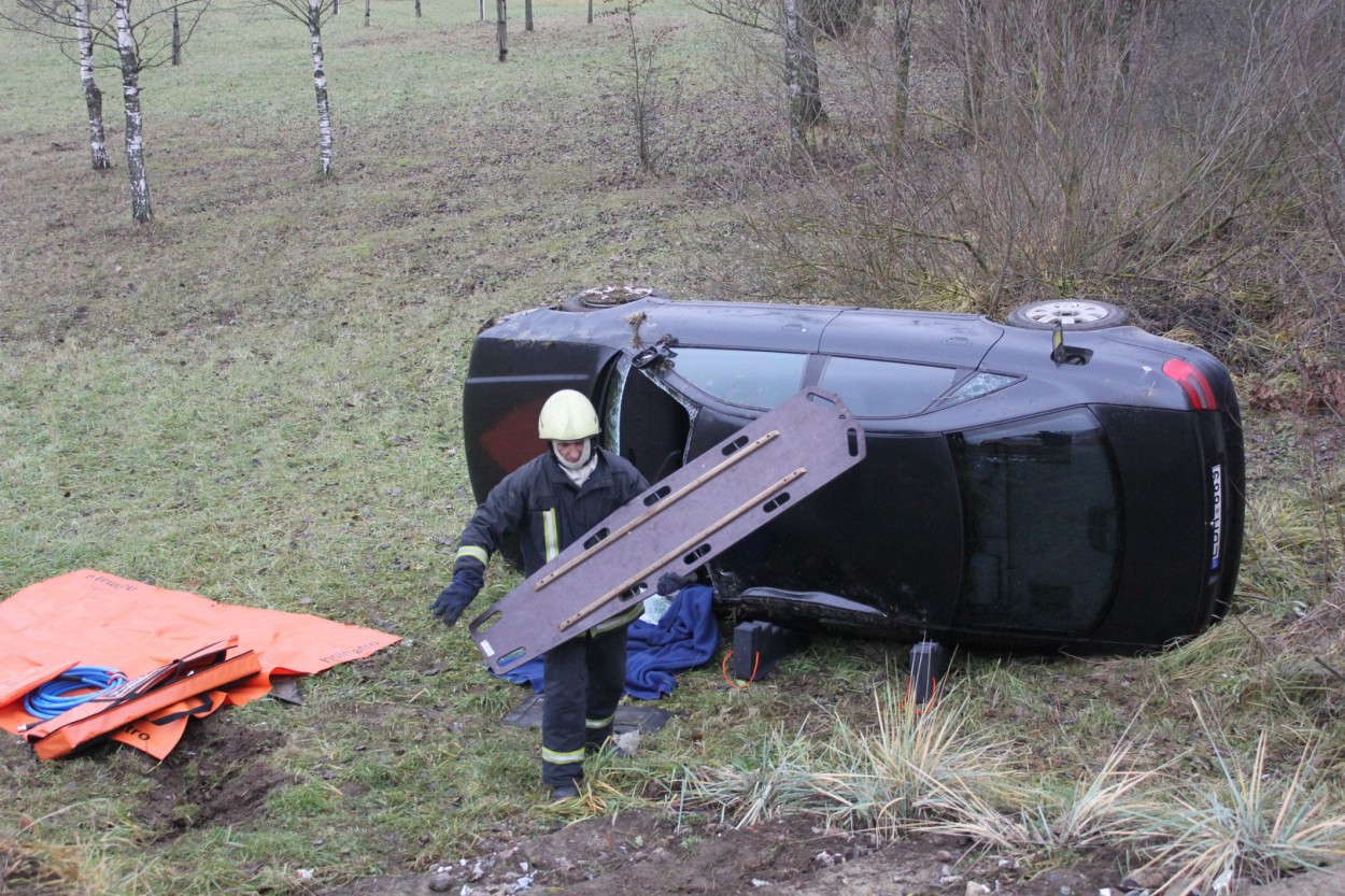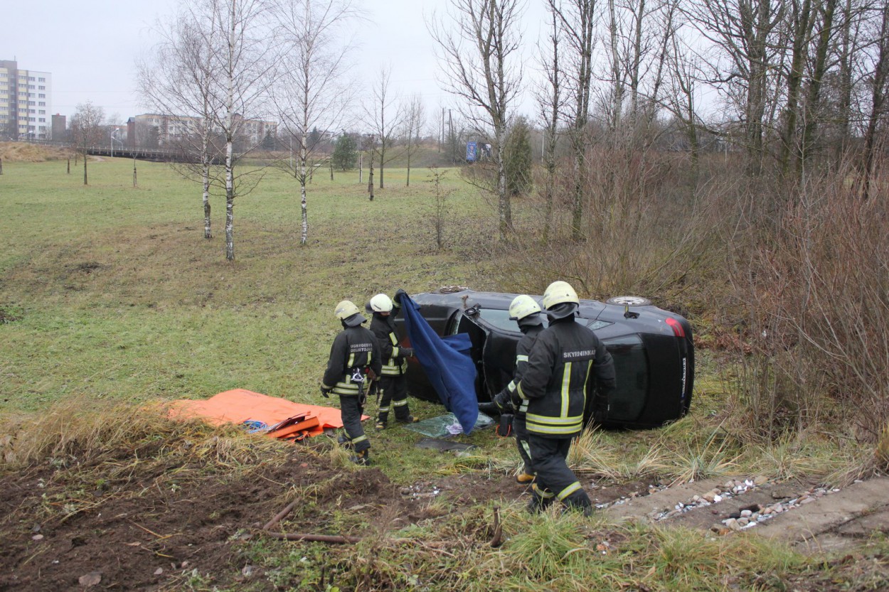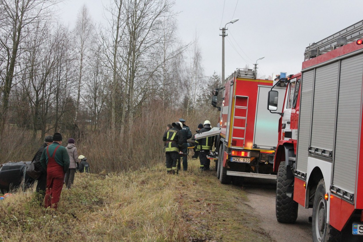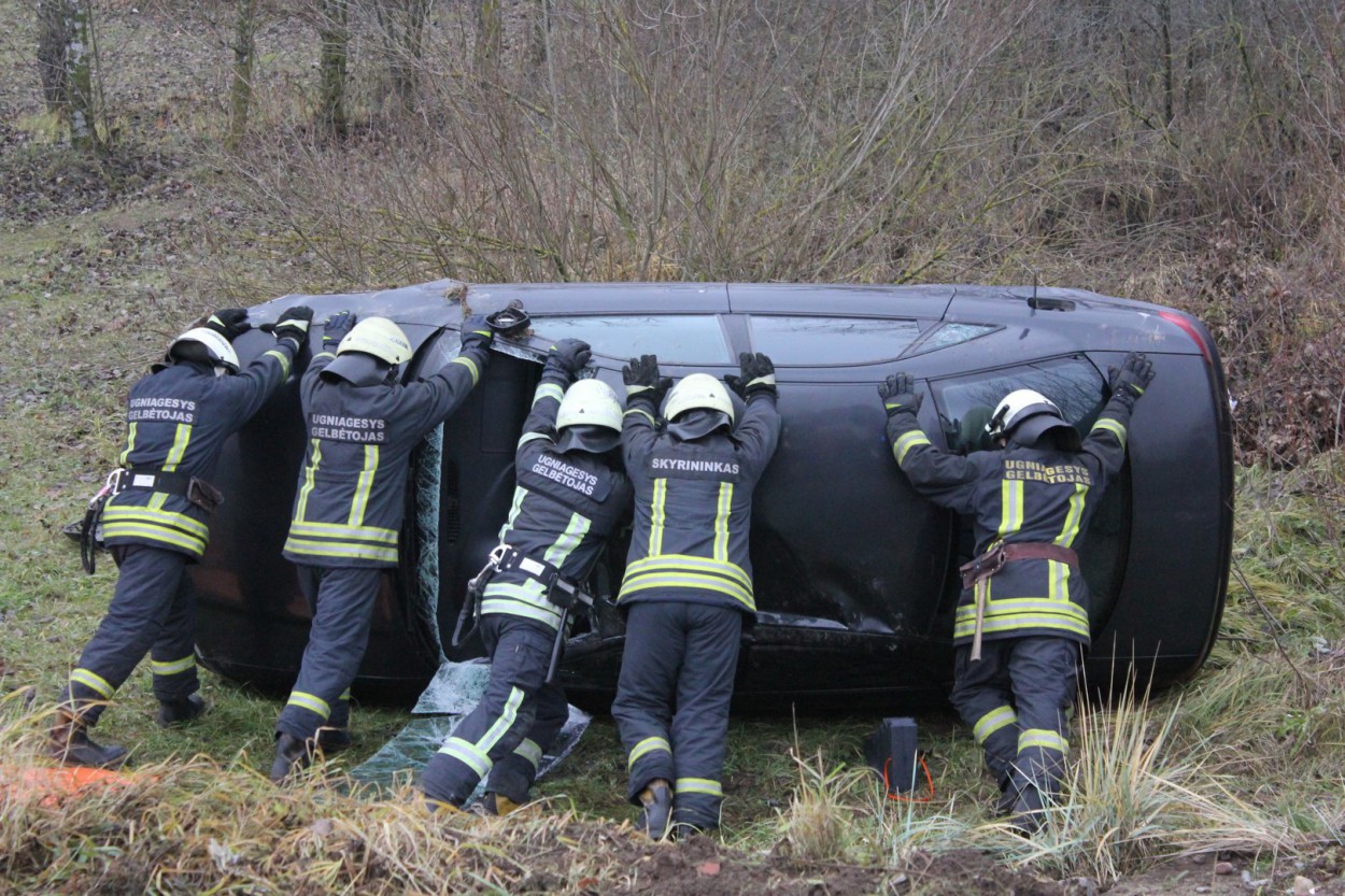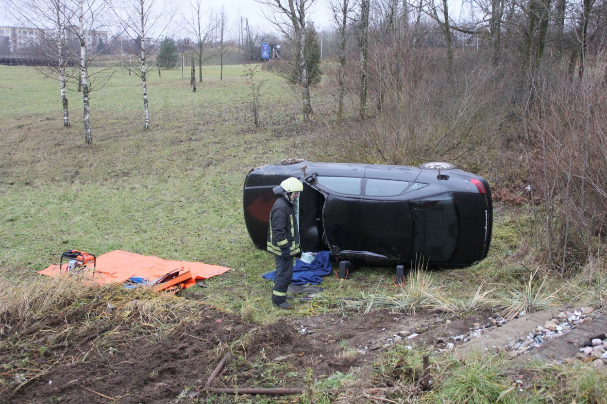 Iš apvirtusio automobilio vairuotoją išvadavo ugniagesiai gelbėtojai, jis perduotas medikams ir greitosios medicinos pagalbos automobiliu išvežtas į ligoninę.