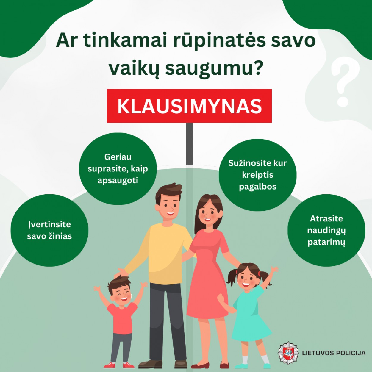 „Vienas svarbiausių saugumo garantų – žinojimas, ką veikia jūsų vaikas ir atviras bendravimas. Tikimės, kad šis klausimynas padės tėveliams geriau suprasti savo vaikus ir juos supančius galimus pavojus“, - teigia policijos generalinis komisaras Renatas Požėla.