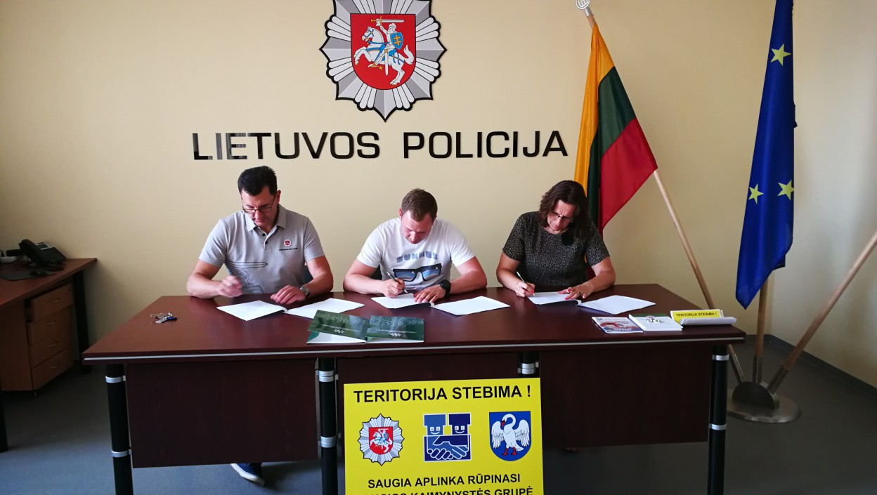 Sutartį savo parašais patvirtino Jonavos policijos komisariato viršininkas Šarūnas Martinkėnas, Jonavos miesto seniūnijos atstovas, seniūno pavaduotojas Tautvydas Pabrinkis ir naujos SKG „Trys namai“ atstovė Lolita Nekrošienė.