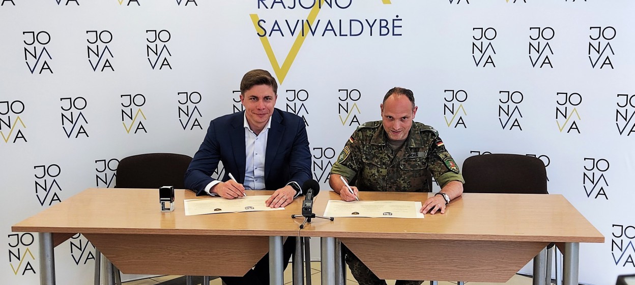 Šiandien, liepos 5-ąją, Jonavos r. savivaldybės meras Mindaugas Sinkevičius ir NATO priešakinių pajėgų vadas, leitenantas pulkininkas Danielis Andra (Daniel Andrä) pasirašė bendrystės sutartį.