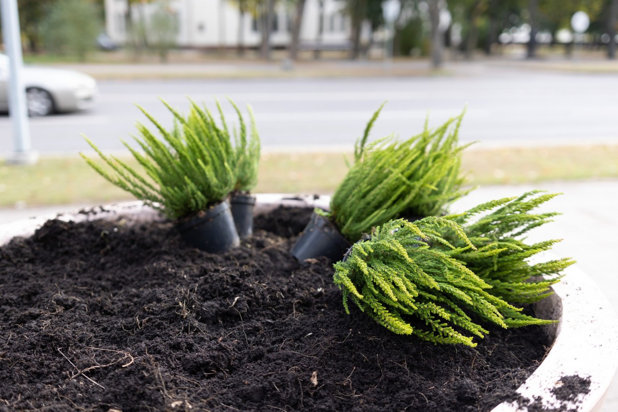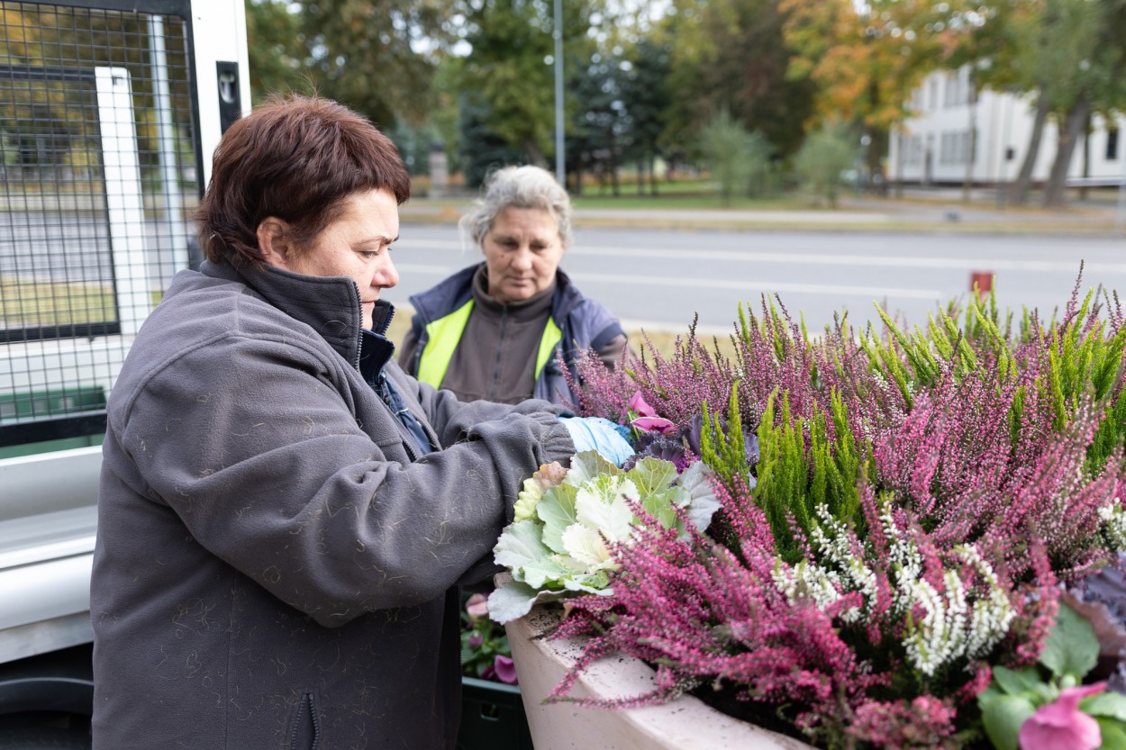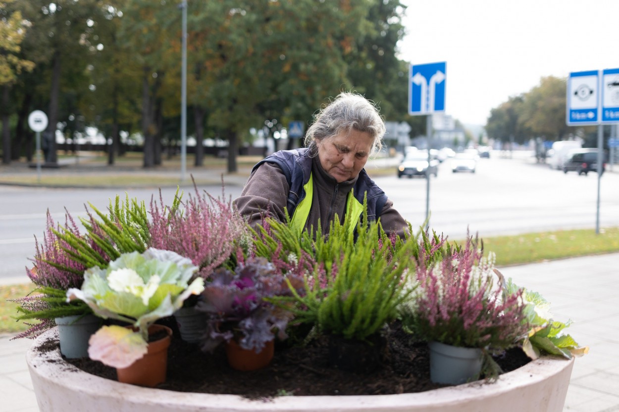 ,,Centre buvusias vienmetes gėles pakeitė rudeninės: viržiai, dekoratyviniai kopūstai, našlaitės. Šie augalai pasodinti tuo tikslu, kad buvusių gėlių vietoje neliktų tuščia ir kažkas žydėtų iki pavasario.