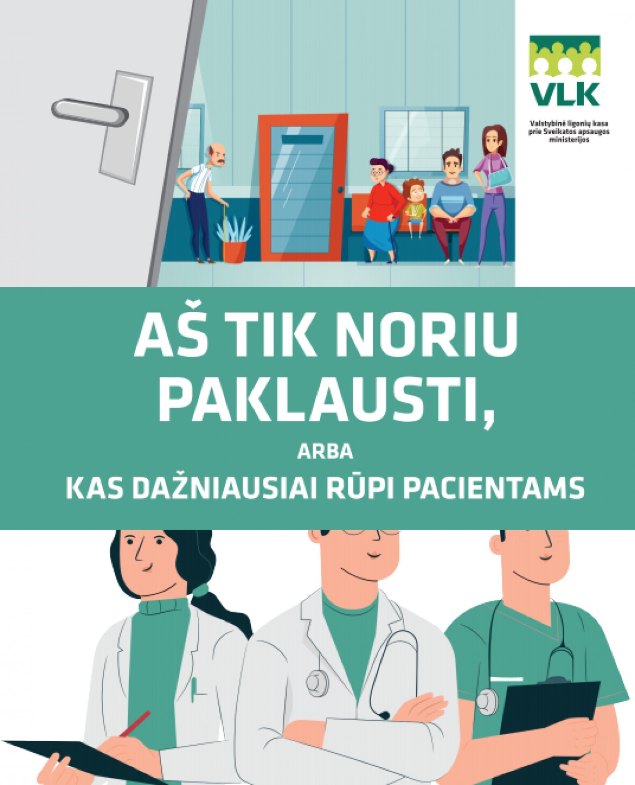 Valstybinė ligonių kasa prie Sveikatos apsaugos ministerijos (VLK) išleido naują informacinį leidinį „Aš tik noriu paklausti, arba kas dažniausiai rūpi pacientams". Jame suprantamai ir aiškiai supažindinama su Lietuvos sveikatos priežiūros sistema, medicinos paslaugomis, galimybėmis, kurias piliečiams užtikrina privalomasis sveikatos draudimas (PSD).