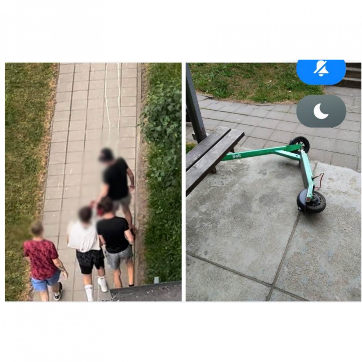 ,,Kažkokie vaikėzai specialiai varto paspirtukus. Esu matęs, kad vieną bandė užmesti ant laiptinės stogelio. Man įdomu, ar ,,Bolt" žino apie tai? Mačiau, kad ,,Facebook'e" buvo patalpinta ir tų asmenų nuotrauka. Siunčiu ją jums", - rašė skaitytojas Justinas.