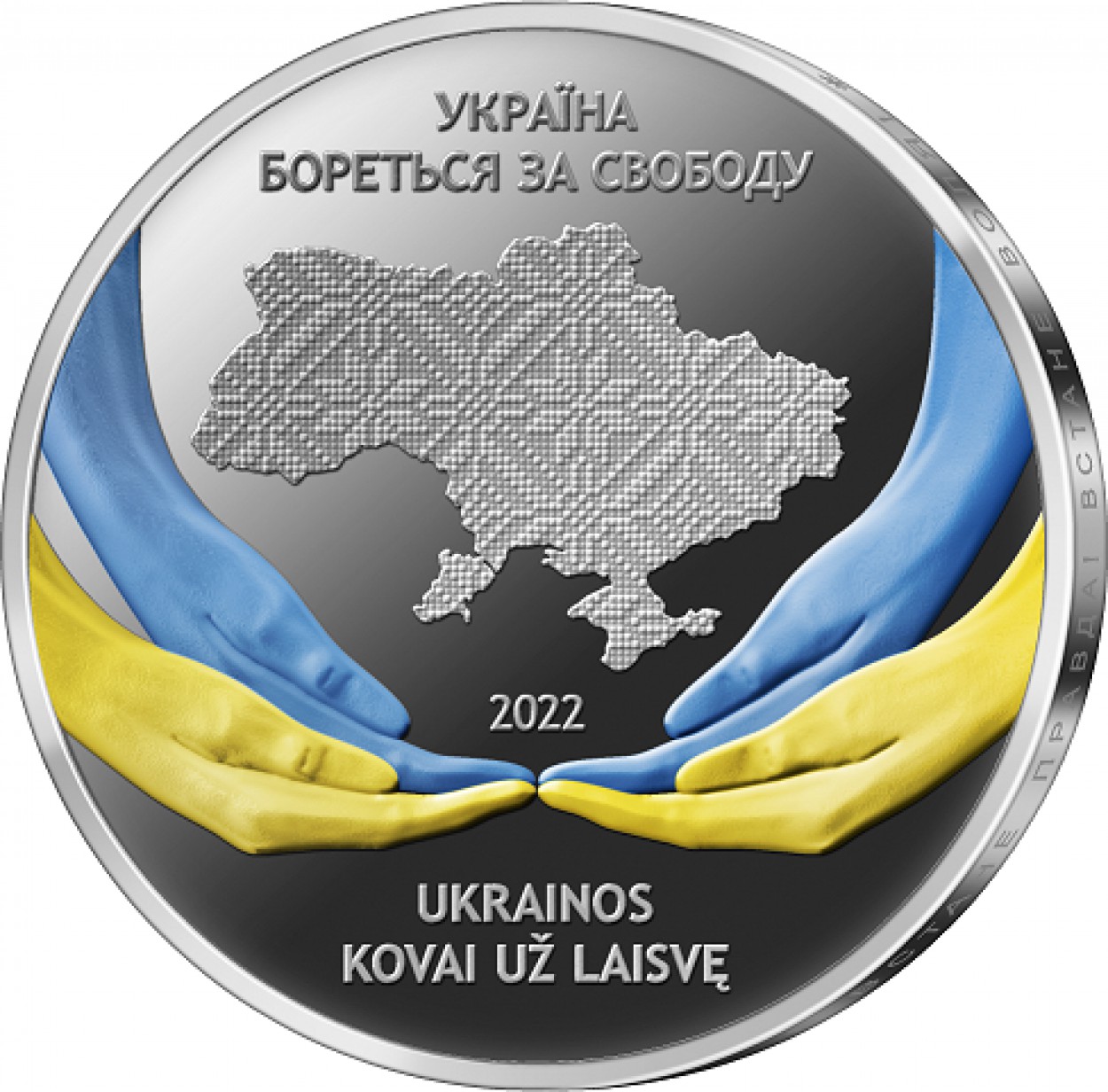 Lietuvos banko valdyba patvirtino kolekcinės 10 eurų sidabro monetos, skirtos Ukrainos kovai už laisvę, etaloną. Monetos dailininkė – ukrainietė dailininkė Svitlana Matvieienko.