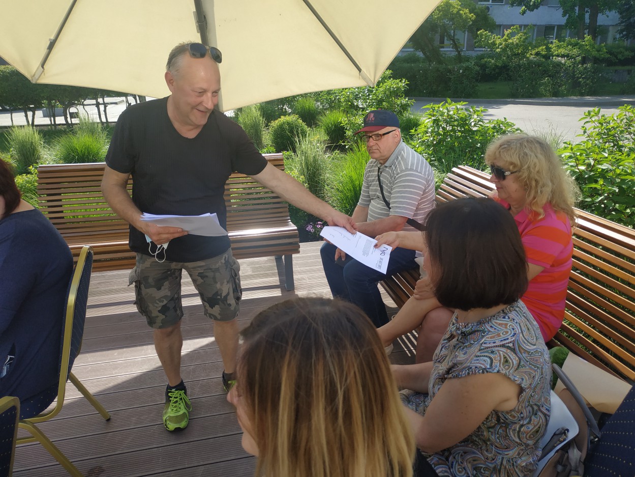 Kur čia nekunkuliuos Kruvinoji Merė nuo tiek poezijos ir kūrybinio alsavimo, klausantis, kaip vienas po kito terasoje pabyra žodžiai, baksteli ritmas, nutrupa pauzės... Ji taip ir neišlindo iš Felikso bliūdo, kuriame liepsnomis virto karantininės poetų kaukės. Sakė jiems nebereikės, šiaip ar taip jau mirę. Bet pažadėjo dar sugrįžti, nes kūryba gyva, o poezijos mūsų gyvenime vis mažiau...