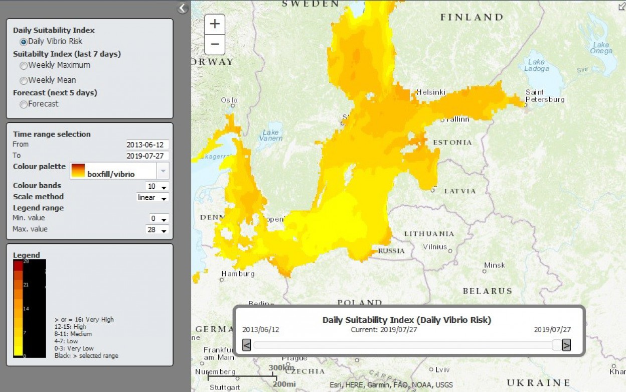 Užkrečiamųjų ligų ir AIDS centras (ULAC), remdamasis Europos ligų prevencijos ir kontrolės centro duomenimis, informuoja, kad Baltijos jūroje, dėl kylančios paviršiaus vandens temperatūros, susidaro tinkamos sąlygos daugintis Vibrio bakterijoms. Manoma, kad vidutinis arba aukštas jų lygis bus registruojamas daugelyje Baltijos jūros pakrančių: Danijoje, Švedijoje, Vokietijoje, Lenkijoje, ypač Gdansko įlankoje, Latvijoje, Estijoje, Suomijoje taip pat ir Lietuvoje, Klaipėdos apskrityje.