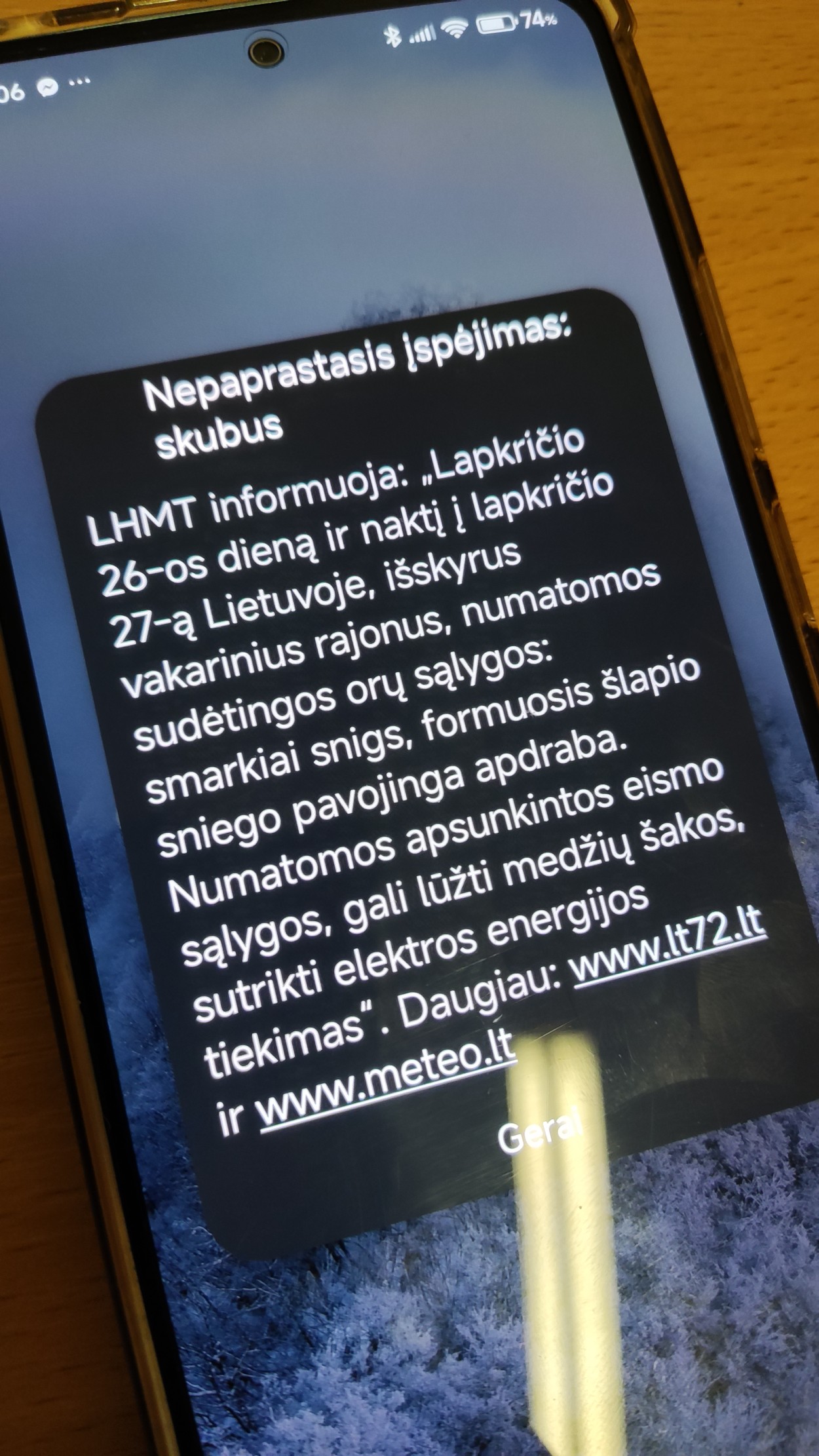 Lietuvos hidrometeorologijos tarnybos sinoptikai perspėja, o Gyventojų perspėjimo ir informavimo sistema (GPIS) į mobiliuosius telefonus siunčia įspėjimus dėl laukiančio gausaus sniego.