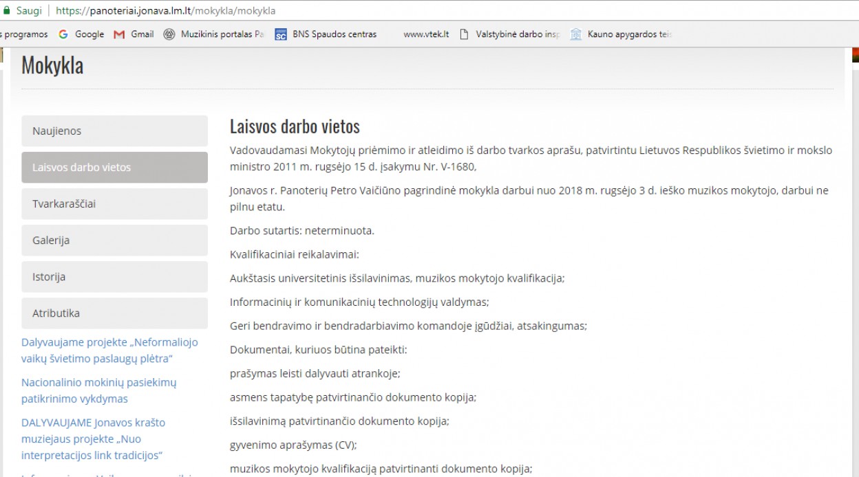 Mokyklos puslapyje rašoma, jog iki rugpjūčio 17 dienos vyko tik vienas konkursas muzikos mokytojo pareigoms užimti, kuris darbą turėjo pradėti nuo š.m. rugsėjo 3 d. Apie konkursą į laisvą direktoriaus pavaduotojo vietą skelbimo nėra.