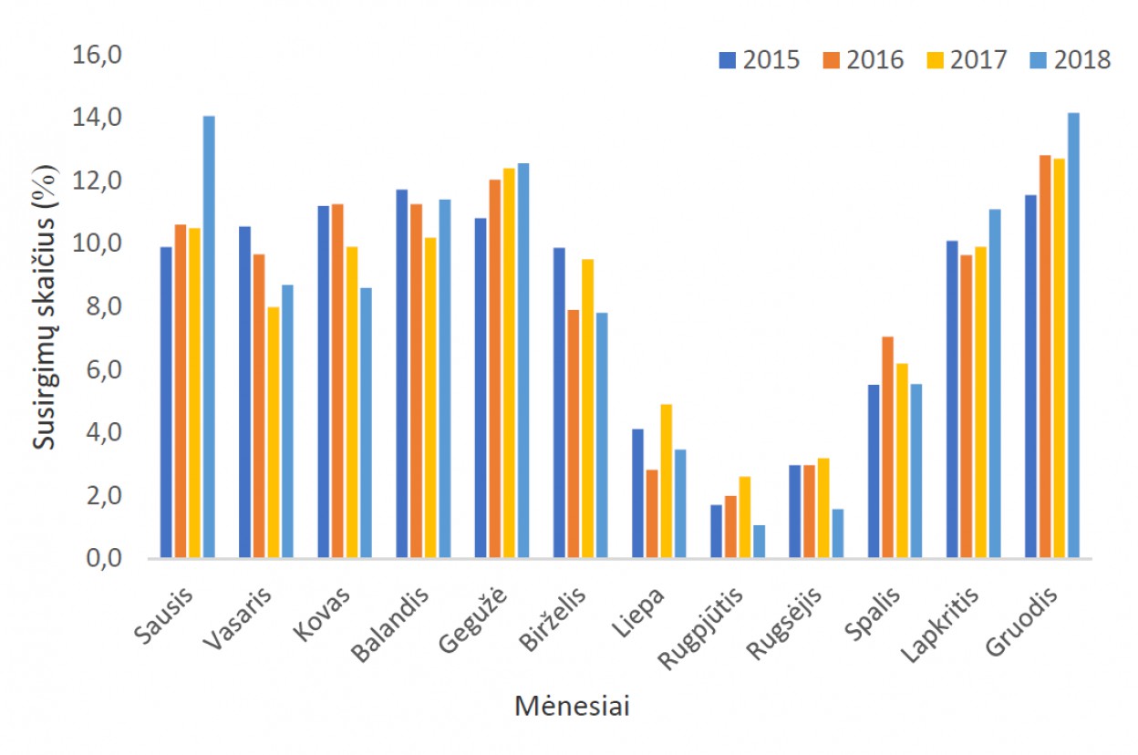Pasak ULAC medikų, vėjaraupių susirgimo atvejai registruojami ištisus metus, tačiau infekcijai būdingas sezoniškumas – sergamumo pakilimai stebimi žiemos ir pavasario mėnesiais. Kasmet vidutiniškai registruojama po 15 tūkst. susirgimų vėjaraupiais. Taip pat vėjaraupių infekcijai būdingas cikliškumas, o tai reiškia, jog kas 2–5 metus kartojasi vėjaraupių sergamumo pakilimai.
