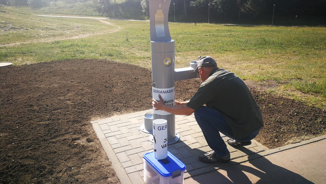 Joninių slėnyje šiandien pristatytas pirmasis toks geriamojo vandens fontanėlis, kuris tiks prisipildyti vandens butelį, atsigerti žmonėms ir pagirdyti keturkojį augintinį.