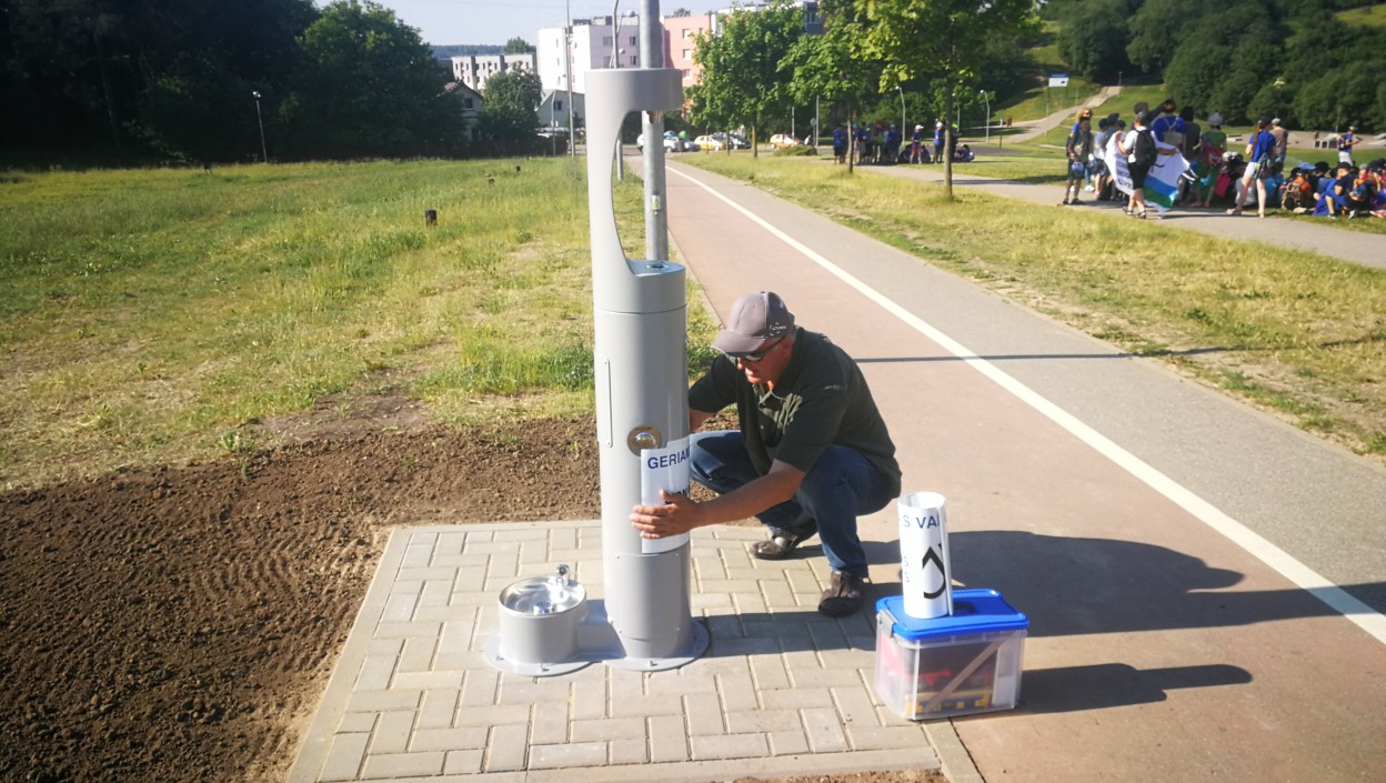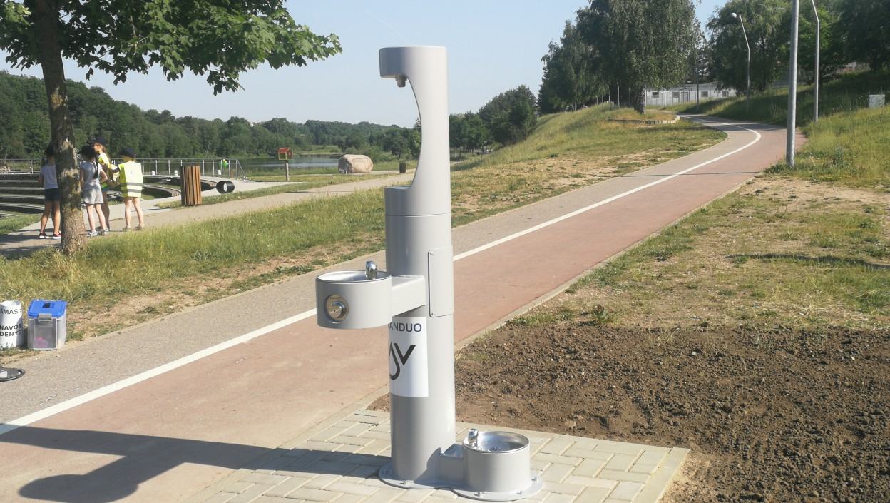 Pirmadienio vakarą trijų pakopų geriamojo vandens fontanėlis buvo pastatytas, aplink jį sutvarkyta aplinka, šiandien – užklijuotas skiriamasis informacinis ženklas.