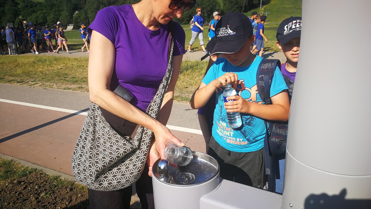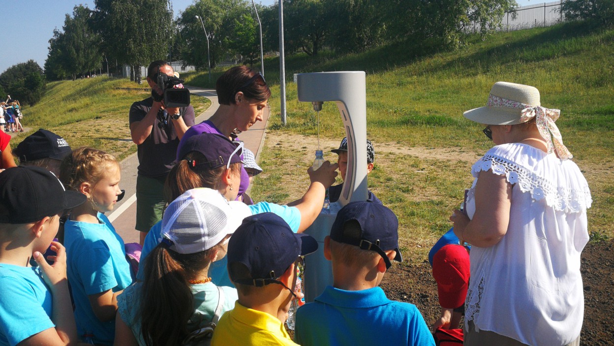 Pirmiesiems jį pavyko išbandyti Jonavos Panerio pradinės mokiniams, kurie susiruošė keliauti į žygį aplink tvenkinius. Pasak juos lydėjusių mokytojų, tai labai patogus įtaisas, iš kurio gali ne tik atsigerti, bet ir prisipildyti vandens į buteliukus, išsiruošus į kelią aplink Jonavos tvenkinius. Vaikams tai tapo savotiška atrakcija, kurie iškart perprato vandens paleidimo subtilybę – vanduo bėga paspaudus reikalingame lygyje esantį mygtuką.