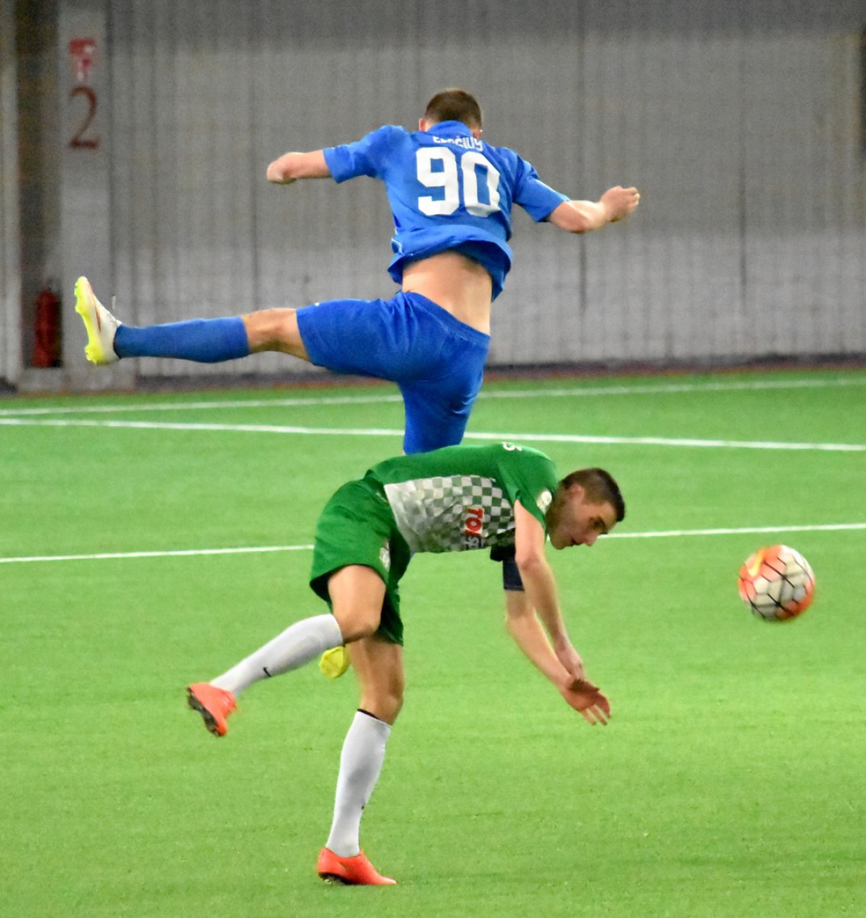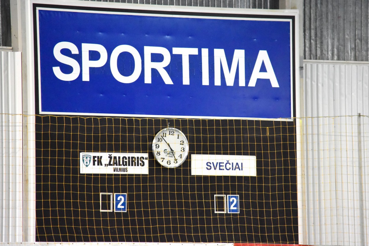Mačas „Sportimos“ manieže prasidėjo visiškai netikėtai, kai jau antrąją minutę po greitos atakos vilniečių baudos aikštelėje nelestinai stabdytas buvo Tadas Eliošius ir rungtynių teisėjas skyrė 11 m baudinį. Jį smūgiu nuo virpsto realizavo Dominykas Galkevičius, pelnydamas savo trečiąjį įvartį čempionate. Po tokio šalto dušo, buvo tikimasi, kad aikštelės šeimininkai greitai grįš į savo čempionišką žaidimą. Visgi, 12 min. sostinės futbolininkai atsidūrė visiškame nokdaune. Po puikaus Valdemaro Borovskio kamuolio perdavimo į varžovų baudos aikštelę, vilniečių gynybą sužaidė neužtikrintai ir šiose rungtynėse startinėje sudėtyje debiutavęs Tomas Salamanavičius „šovė“ tiksliai – 2:0!