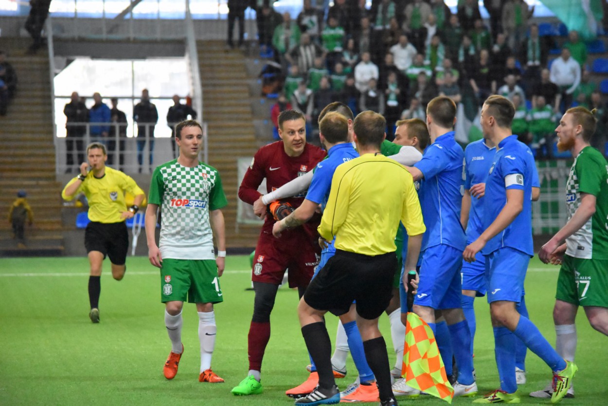 Šiose rungtynėse emocijos liejosi per kraštus, nes teisėjas komandos parodė net 8 geltonas korteles (po keturias kiekvienai). Jau trečią įspėjimą per penkerias rungtynes gavo T.Eliošius.