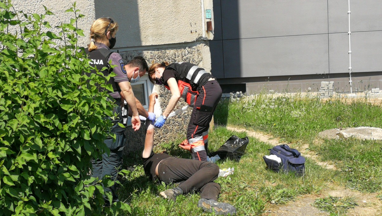 Į įvykio vietą atvykę policijos pareigūnai sulaukė ir medikų pastiprinimo. Paaiškėjo, kad vidutinio amžiaus vyras buvo vartojęs alkoholio. Jis tiesiai po daugiabučio langais nusprendė keliose vietose, tarp riešo ir alkūnės, susipjaustyti rankas. Tiek policijai, tiek medikams šis vyriškis gerai pažįstamas – dėl įvairių incidentų į gydymo įstaigą yra vežtas ne kartą.