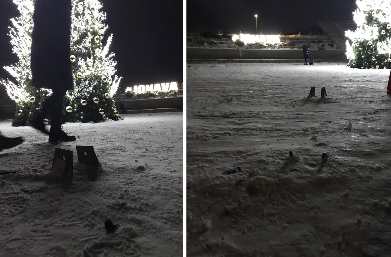 „Šį vakarą teko stebėti siaubingą įvykį Joninių slėnyje, kai maždaug 6-7 metų vaikas, skriedamas čiuožyne nuo kalniuko, trenkėsi į styrančias metalines detales ir stipriai susižalojo kojytę, persiplėšė džinsiukus!!! Tėveliai, saugokite vaikučius! O atsakingų asmenų prašau pažymėti ar uždengti pavojų keliančias metalo detales“, - savo paskyroje rašė moteris bei paviešino kelias, iš po sniego styrančių metalinių detalių nuotraukas.