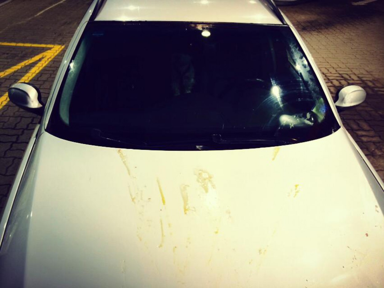 Nežinomi asmenys į jo automobilį paleido kelis kiaušinius.