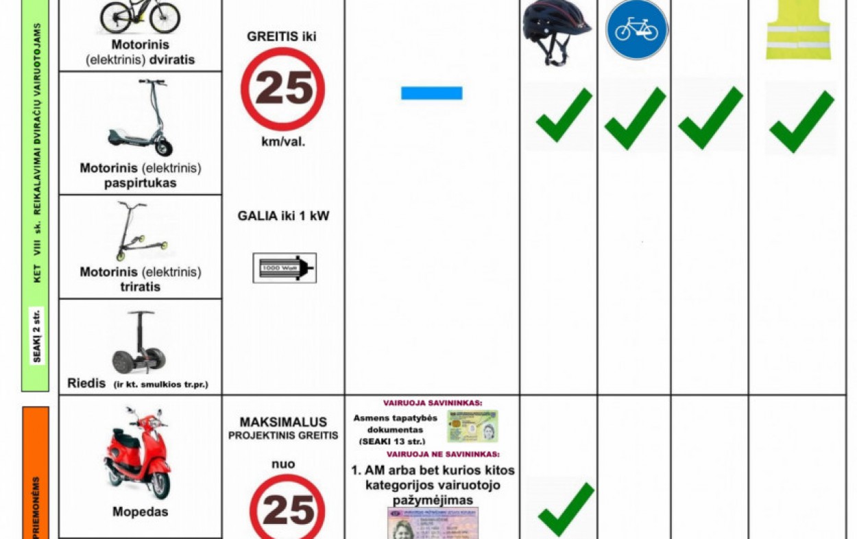 Dviračių, motorinių dviračių (elektrinių paspirtukų ir pan.) dalyvavimą eisme, kaip ir visą eismo keliais tvarką Lietuvos Respublikoje nustato Kelių eismo taisyklės ir Lietuvos Respublikos saugaus eismo automobilių keliais įstatymas. Minėtos transporto priemonės ne tik tausoja aplinką, bet ir suteikia patogumo kasdienėse kelionėse. Tačiau jos kartu kelia ir nemažą pavojų eismo saugai, neretai – aplinkinių pasipiktinimą, kad yra nepastebimi, kelia grėsmę pėstiesiems šaligatviuose, o jų vairuotojai yra neatsakingi.