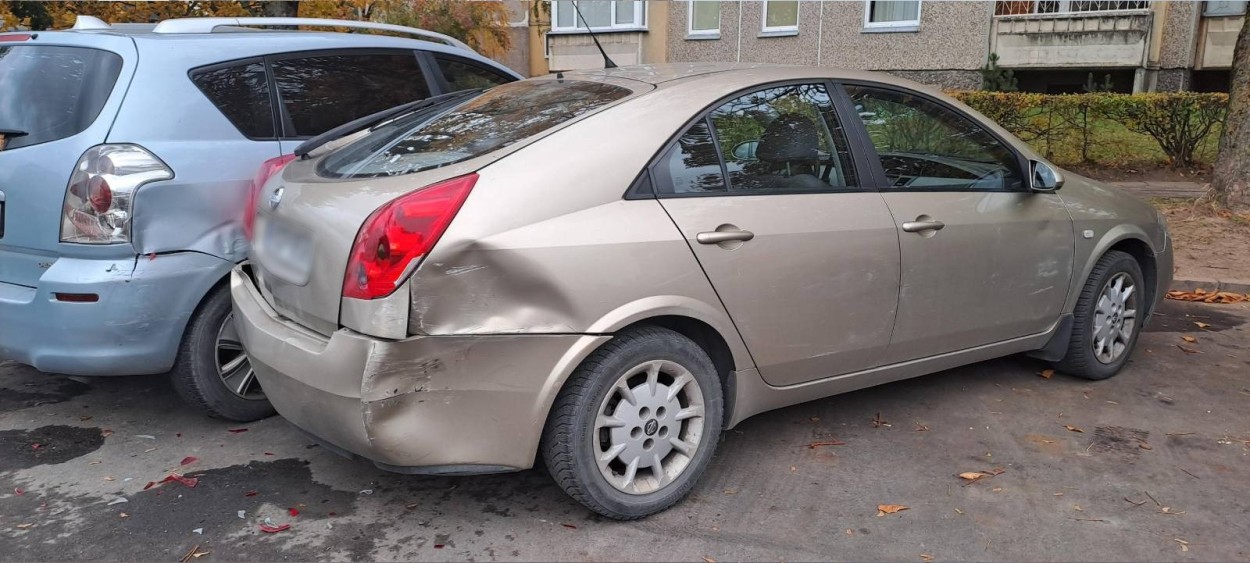 Kauno apskrities vyriausiojo policijos komisariato (toliau – Kauno apskr. VPK) Kelių policijos skyriaus pareigūnai aiškinasi eismo įvykio aplinkybes, kuomet spalio 16 d. apie 15.20 val. Kaune, Baltų pr., pirminiais duomenimis, tamsios spalvos visureigis (galimai „Nissan“ arba „Peugeot“) apgadino stovinčius automobilius „Nissan Primera“ ir „Toyota Corolla“. Automobilis pasišalino iš įvykio vietos, nuvažiuodamas Baltų pr. link Žemgalių g.