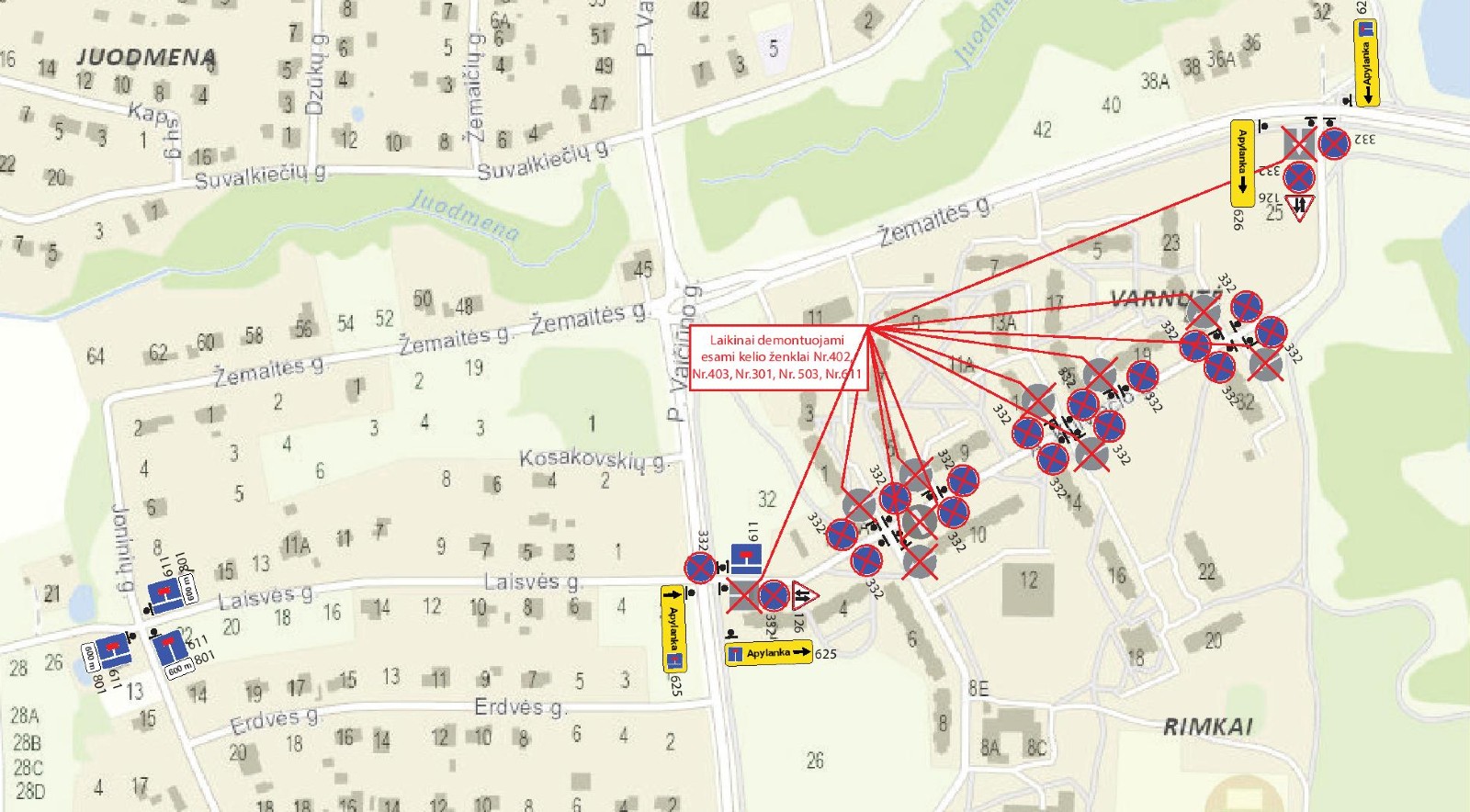 Vykstant darbams, eismas organizuojamas laikina apylanka A. Kulviečio gatve, kurioje bus leidžiamas dvipusis eismas.