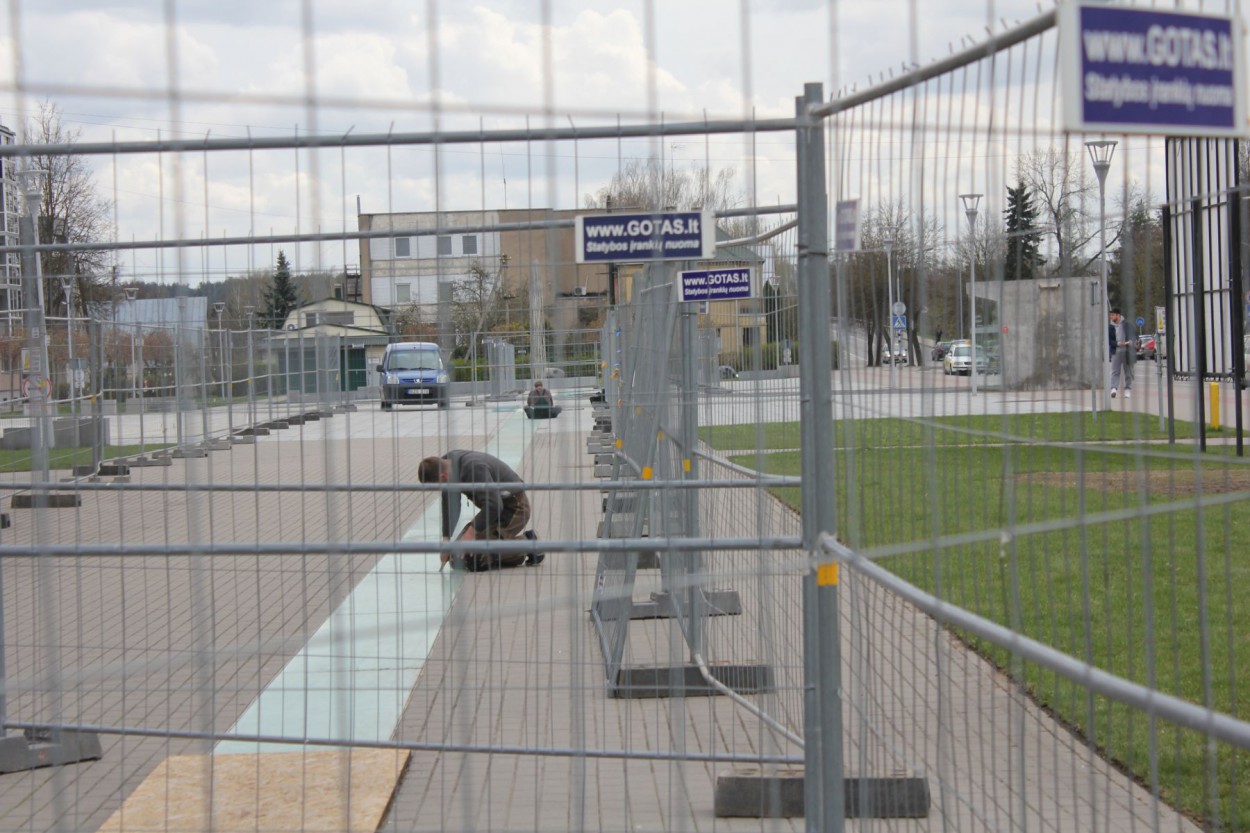 "Dabar stiklai išimami, taip pat bus išimti ir viduje esantys šviestuvai. Takas bus išdėtas juodomis trinkelėmis, tarp kurių – įmontuoti šviestuvai, nes norime išlaikyti šviesos tako idėją. Pats takas taps saugesnis – nebeslidus“, - sakė P.Beišys.