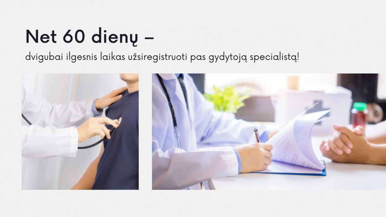 Sveikatos apsaugos ministerija (SAM) informuoja, kad nuo šios savaitės prailginamas laikas užsiregistruoti gydytojo specialisto konsultacijai. Nuo šiol pacientas, gavęs siuntimą, turės 60 dienų užsiregistruoti konsultacijai. Ankščiau šis terminas buvo dvigubai trumpesnis – vienas mėnuo.