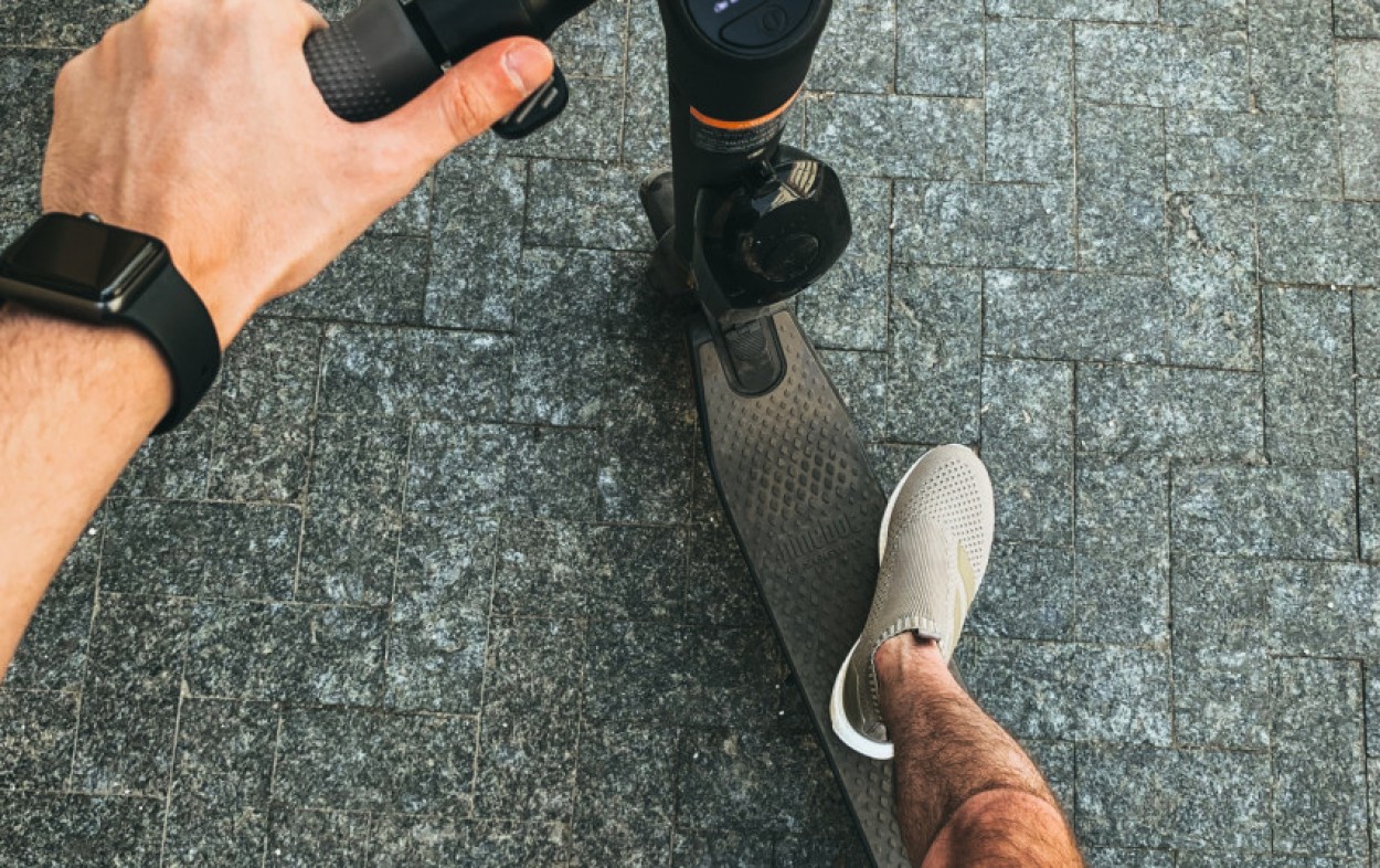 - Važiuoti tokiu greičiu, kad sugebėtumėte saugiai sustabdyti. Važiuojant paspirtuku vairuotojo svorio centras yra ganėtinai aukštai, todėl staigiai stabdant sunkiau išlaikyti pusiausvyrą.