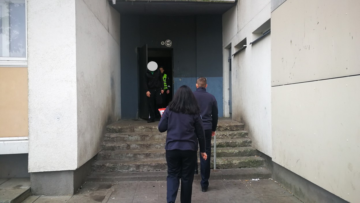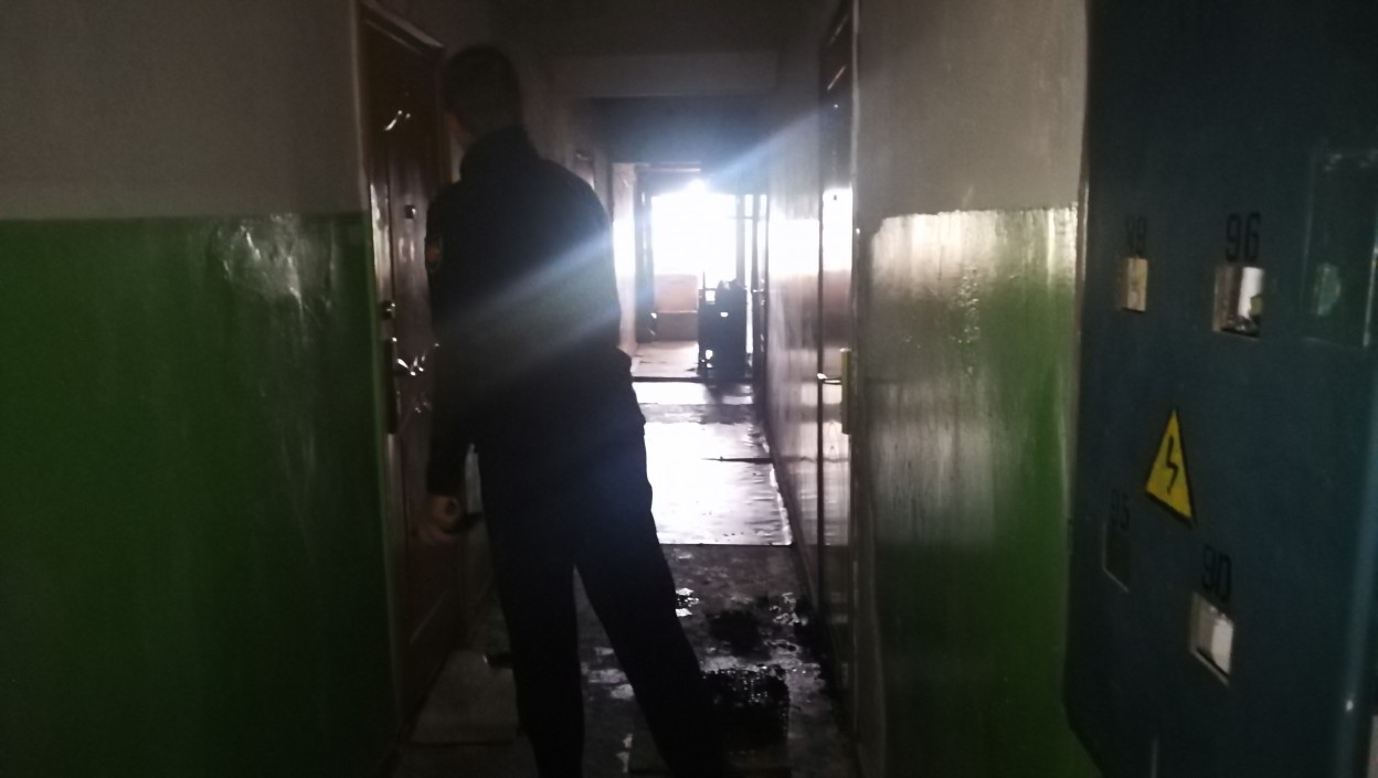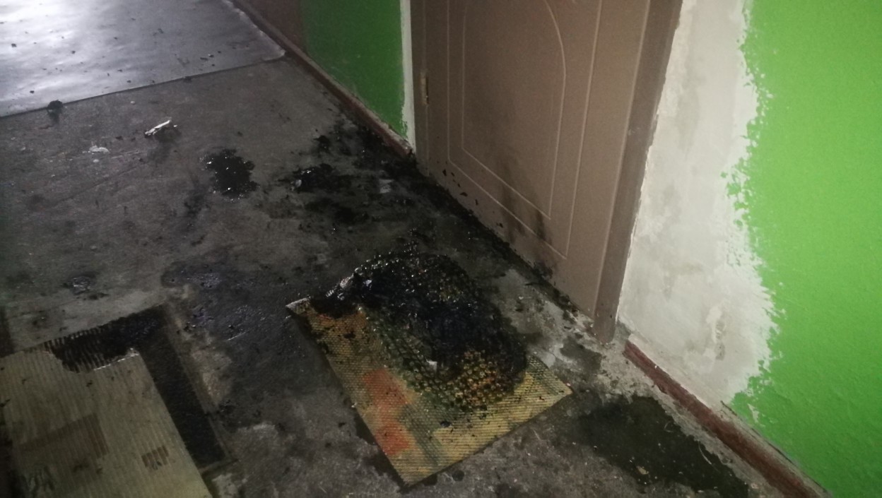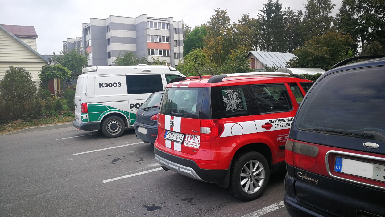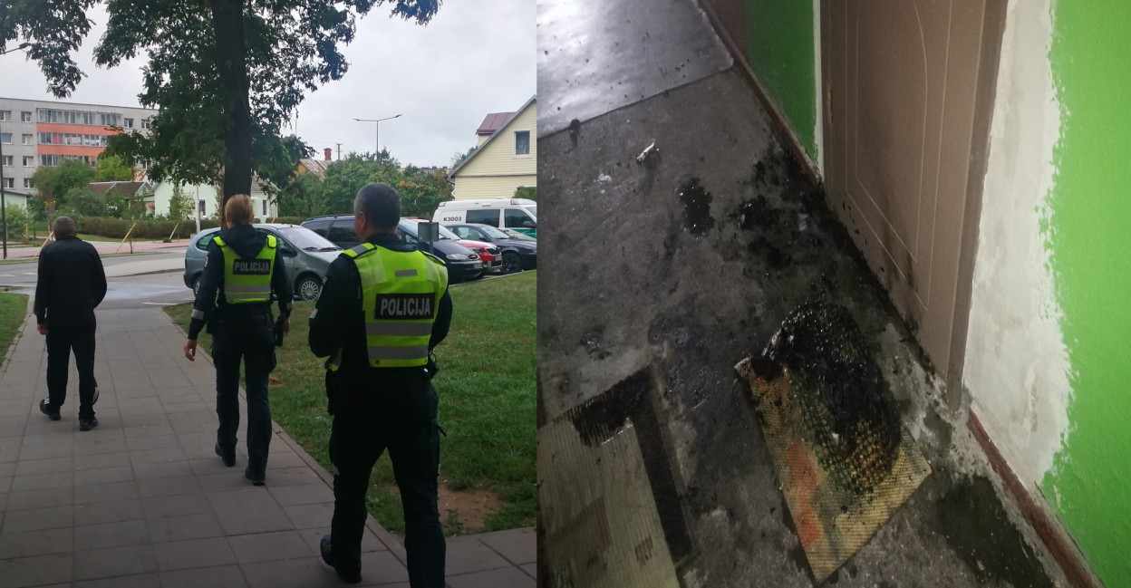 Į įvykio vietą atskubėjo ugniagesiai gelbėtojai, policijos pareigūnai, medikai. Gaisro metu sudegė durų kilimėlis, apdegė buto durys.