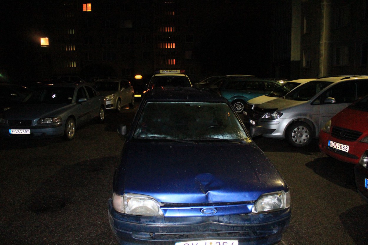 Pasak gyventojų, automobilyje „Ford Escort“ buvo galimai neblaivūs jaunuoliai, kurie netrukus pasišalino. Automobilį jie paliko viduryje kiemo, taip užstatydami kitų gyventojų automobilius.