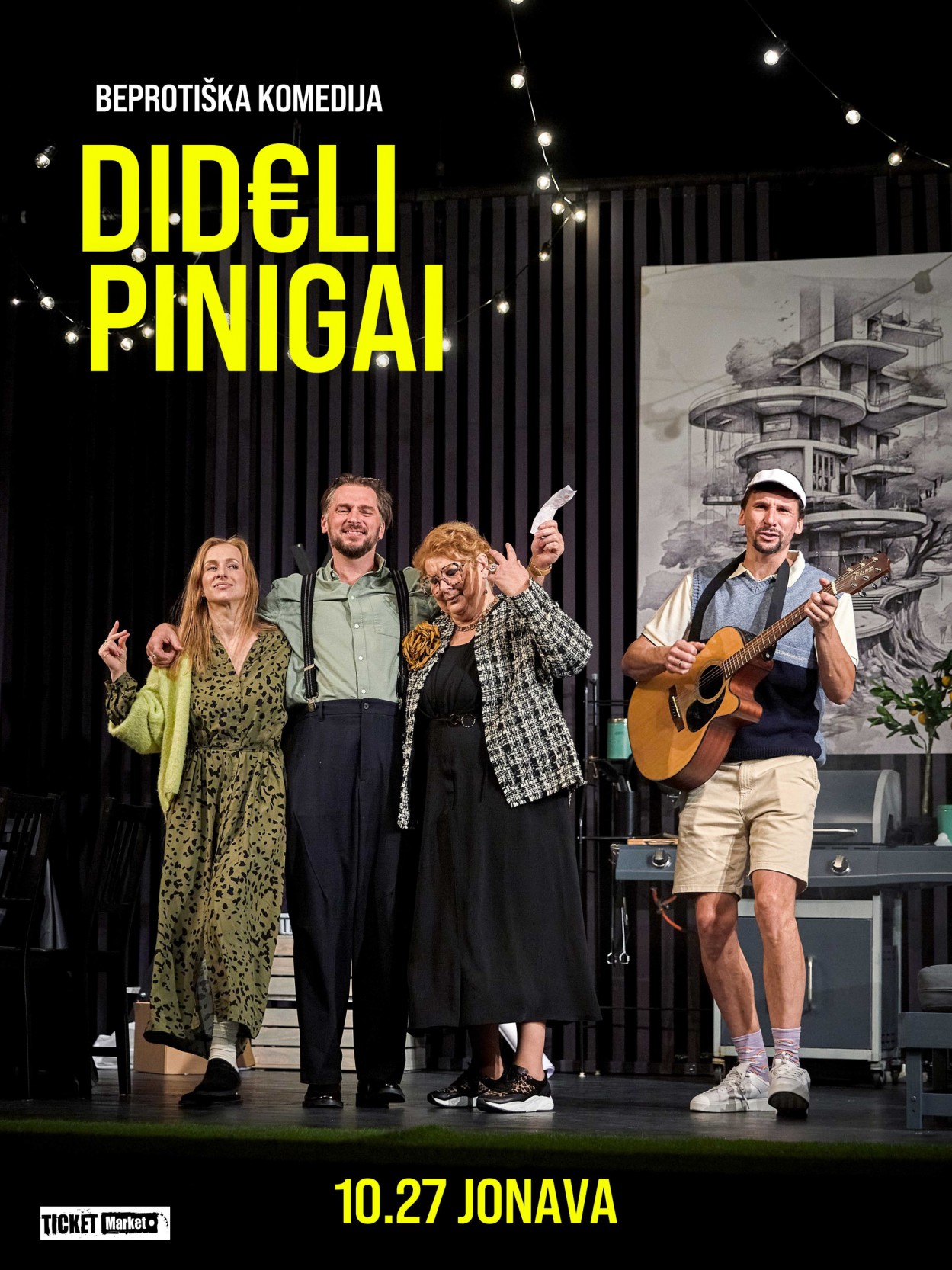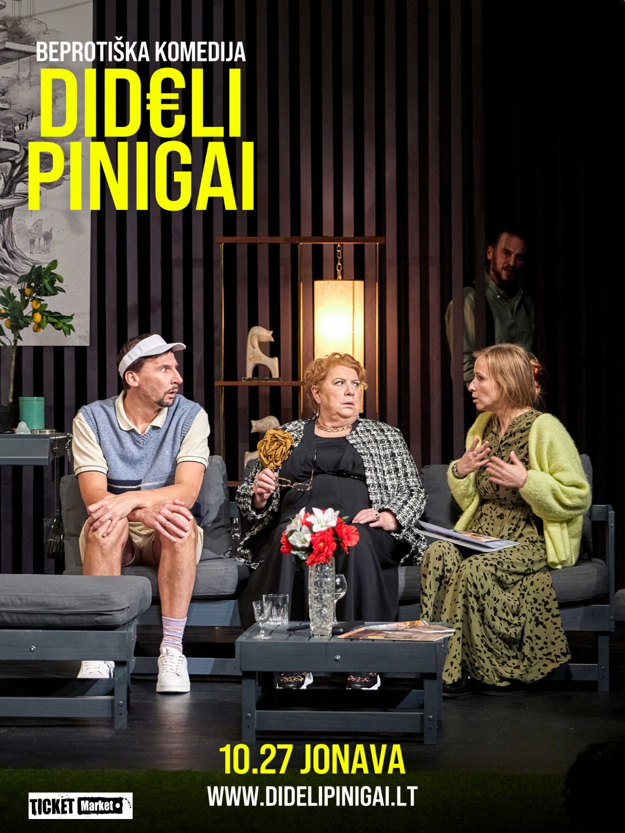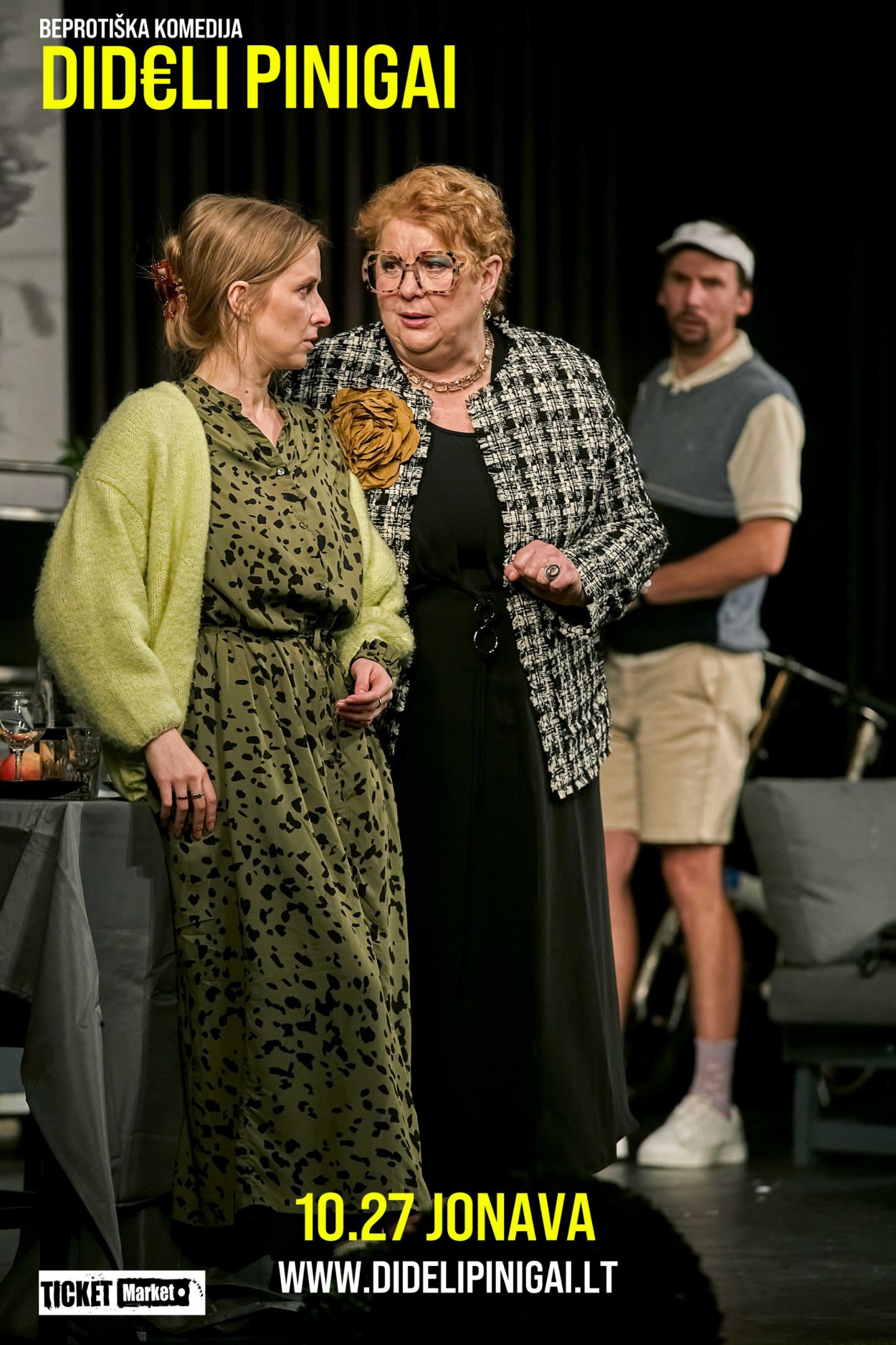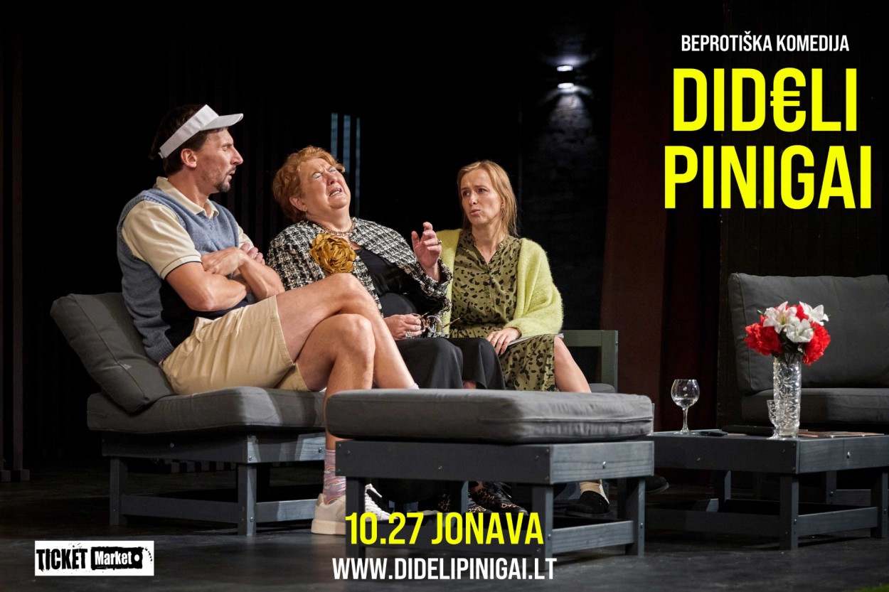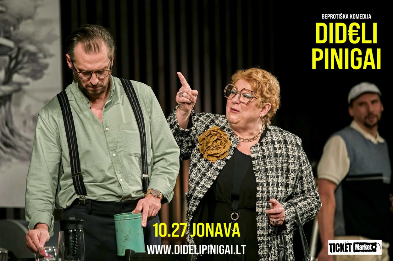 Kaip žinia, Jonavos kultūros centre spalio 27-ąją vyks spektaklio premjera ,,Dideli pinigai”. Neabejojama, kad beprotiška komedija nepaliks abejingų, mat kituose miestuose vykusių premjerų metu žiūrovai plojo atsistoję.