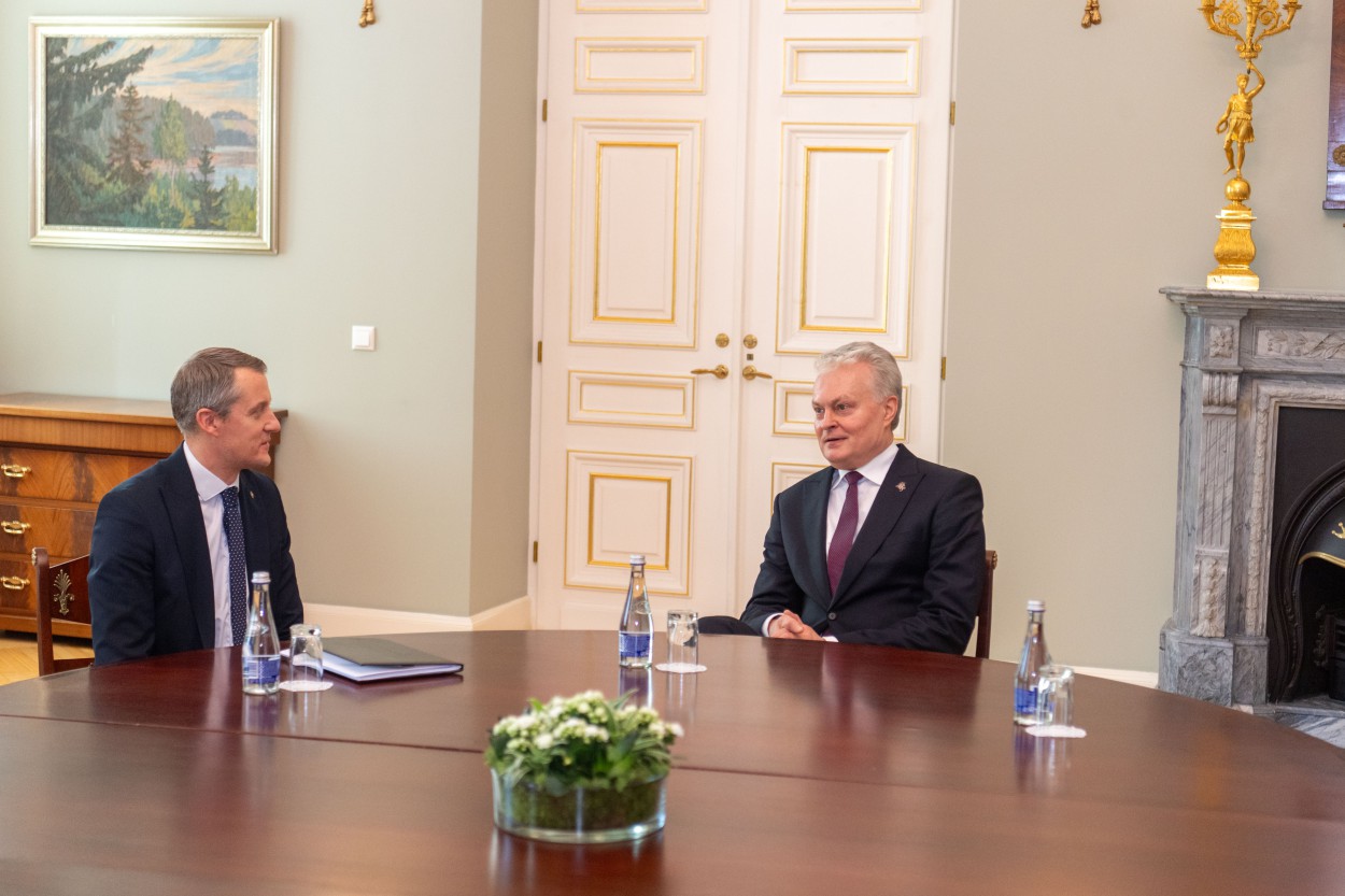 Lietuvos Respublikos Prezidentas Gitanas Nausėda penktadienį, likus 10 dienų iki Baltijos šalių elektros tinklų sujungimo su kontinentinės Europos elektros tinklais, susitiko su energetikos ministru Žygimantu Vaičiūnu.