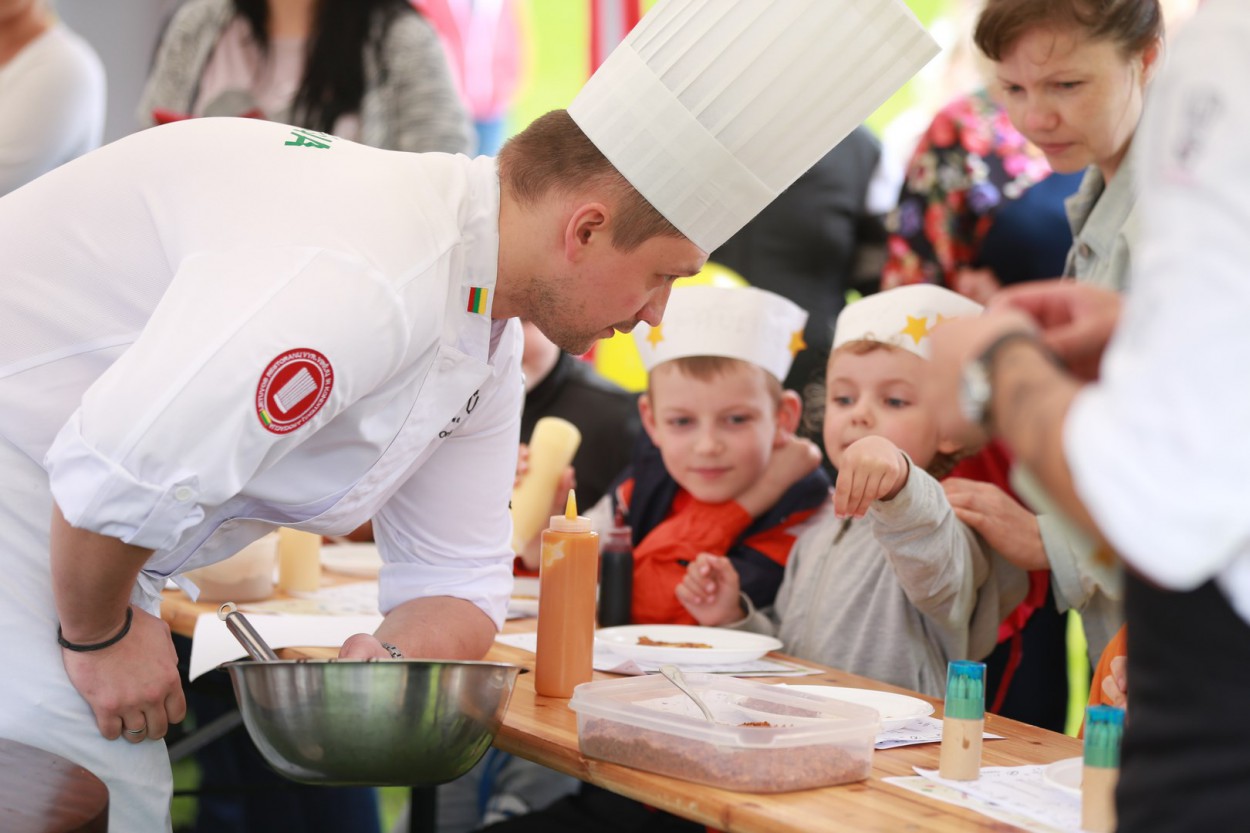 Apie sveiką mitybą kalbėjo jonavietis Artūras Sujeta, o pasaulio kulinarijos olimpiadai Vokietijoje besiruošiantys Nacionalinės šefų rinktinės atstovai mažuosius jonaviečius ir jų šeimas mokė gaminti maistą iš lietuviškų daržovių.