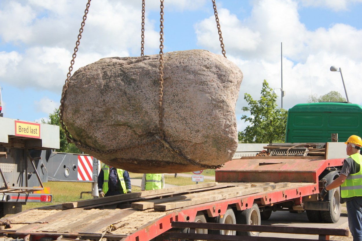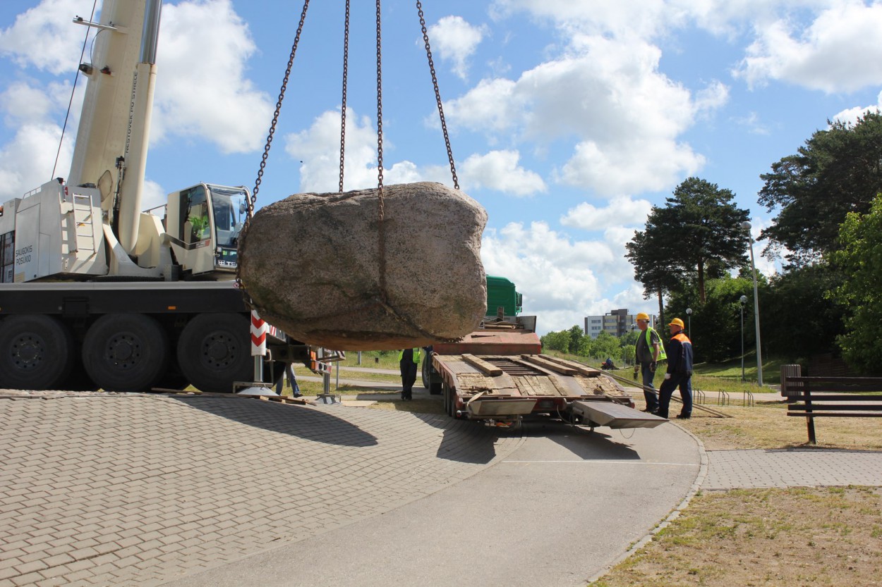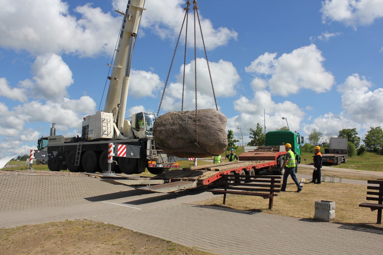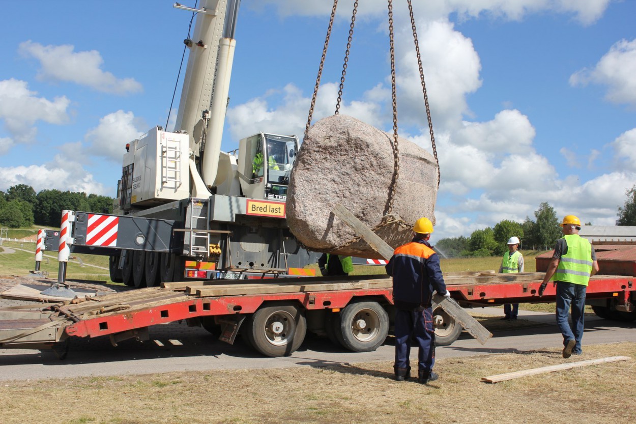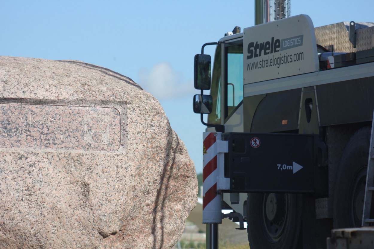 Pirmadienio rytą bendrovės „Mažeikių strėlė“ darbininkai nukėlė prie Joninių slėnio buvusį akmenį ir jį pergabeno į kitą vietą.