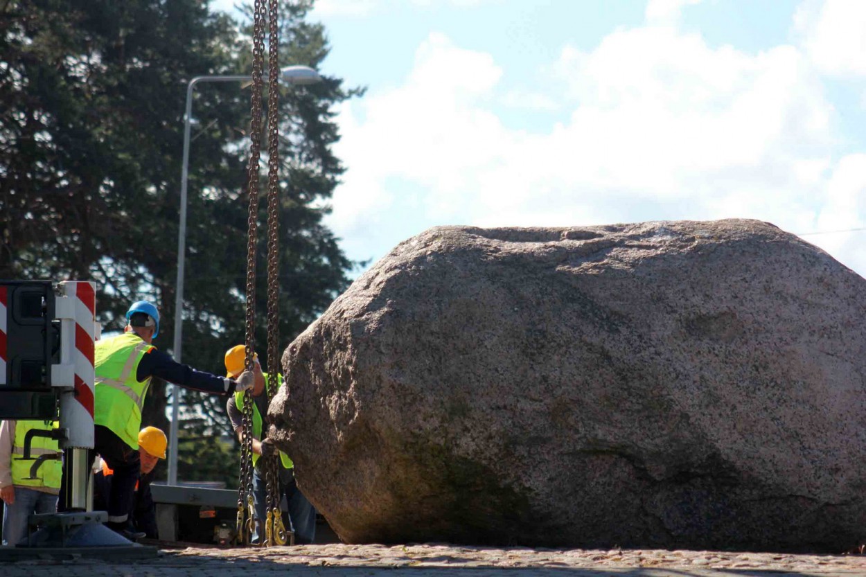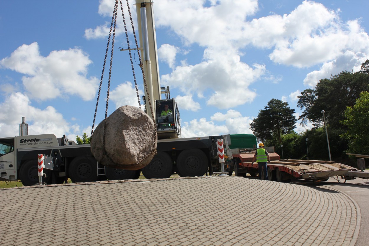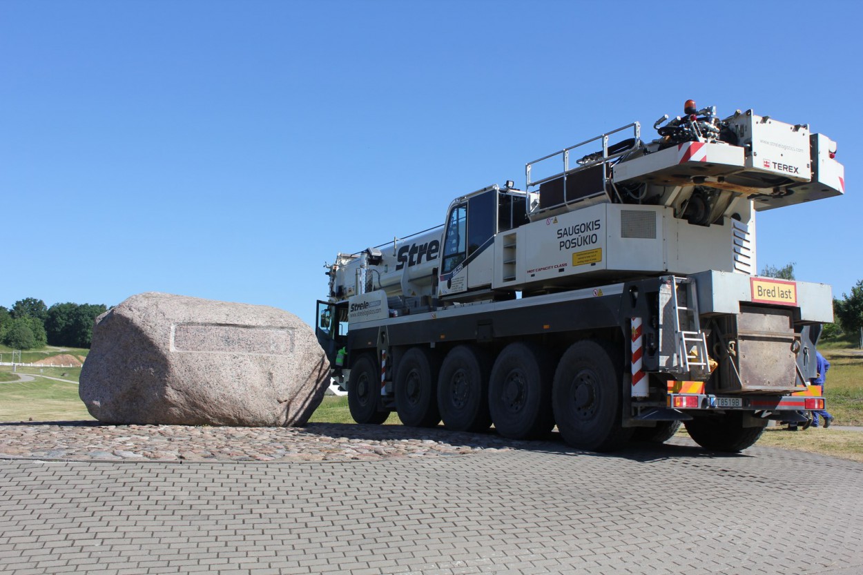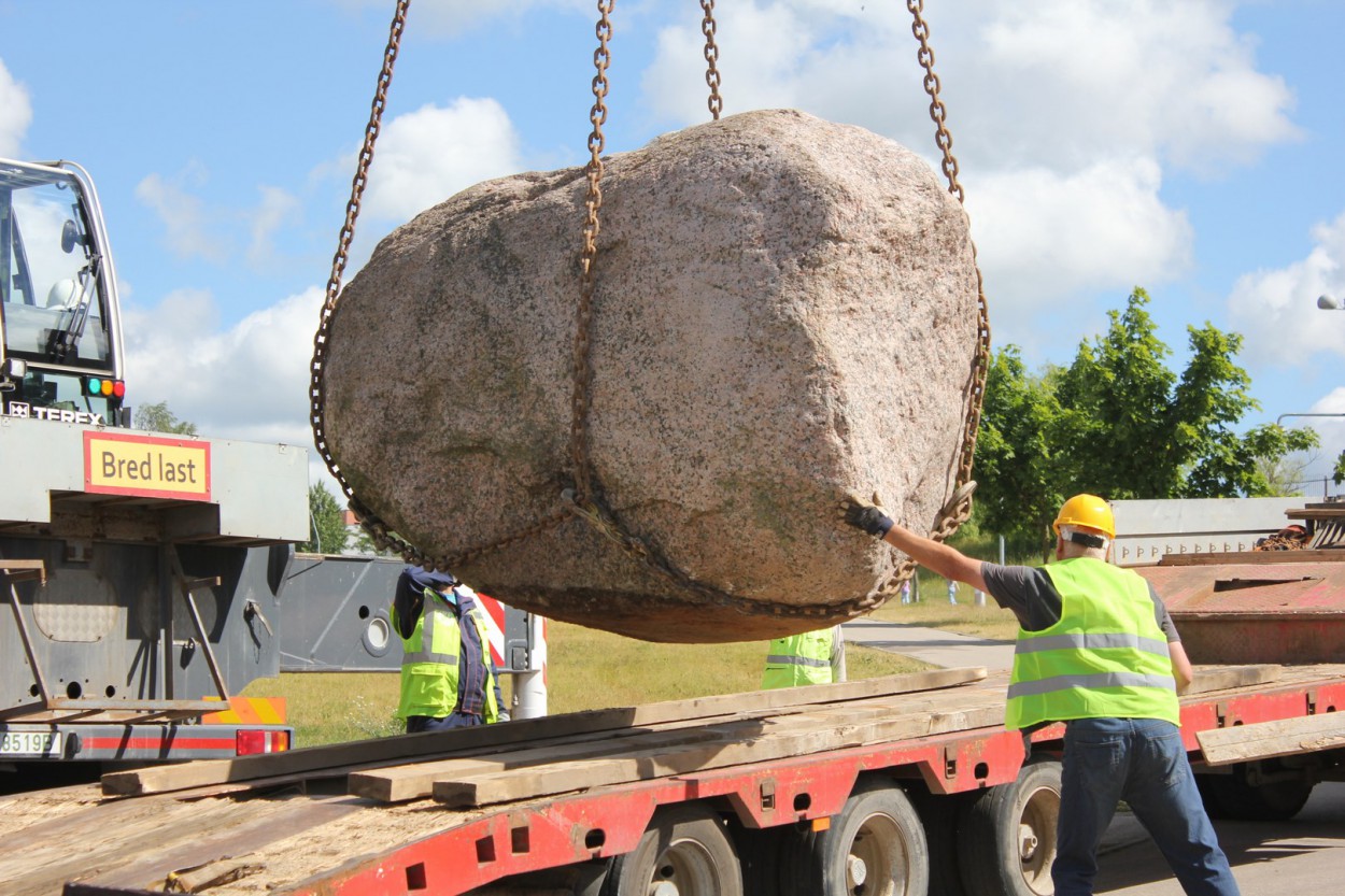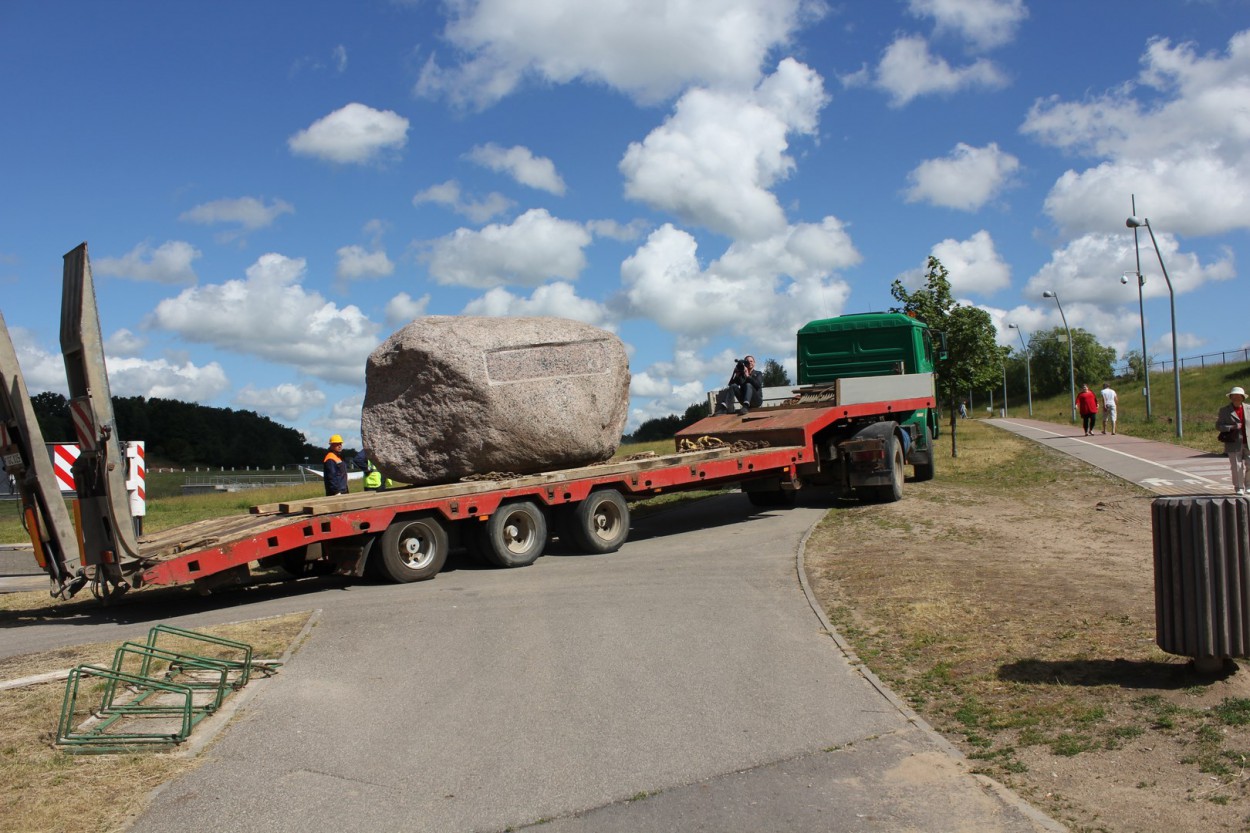 Pirmadienio rytą bendrovės „Mažeikių strėlė“ darbininkai nukėlė prie Joninių slėnio buvusį akmenį ir jį pergabeno į kitą vietą.