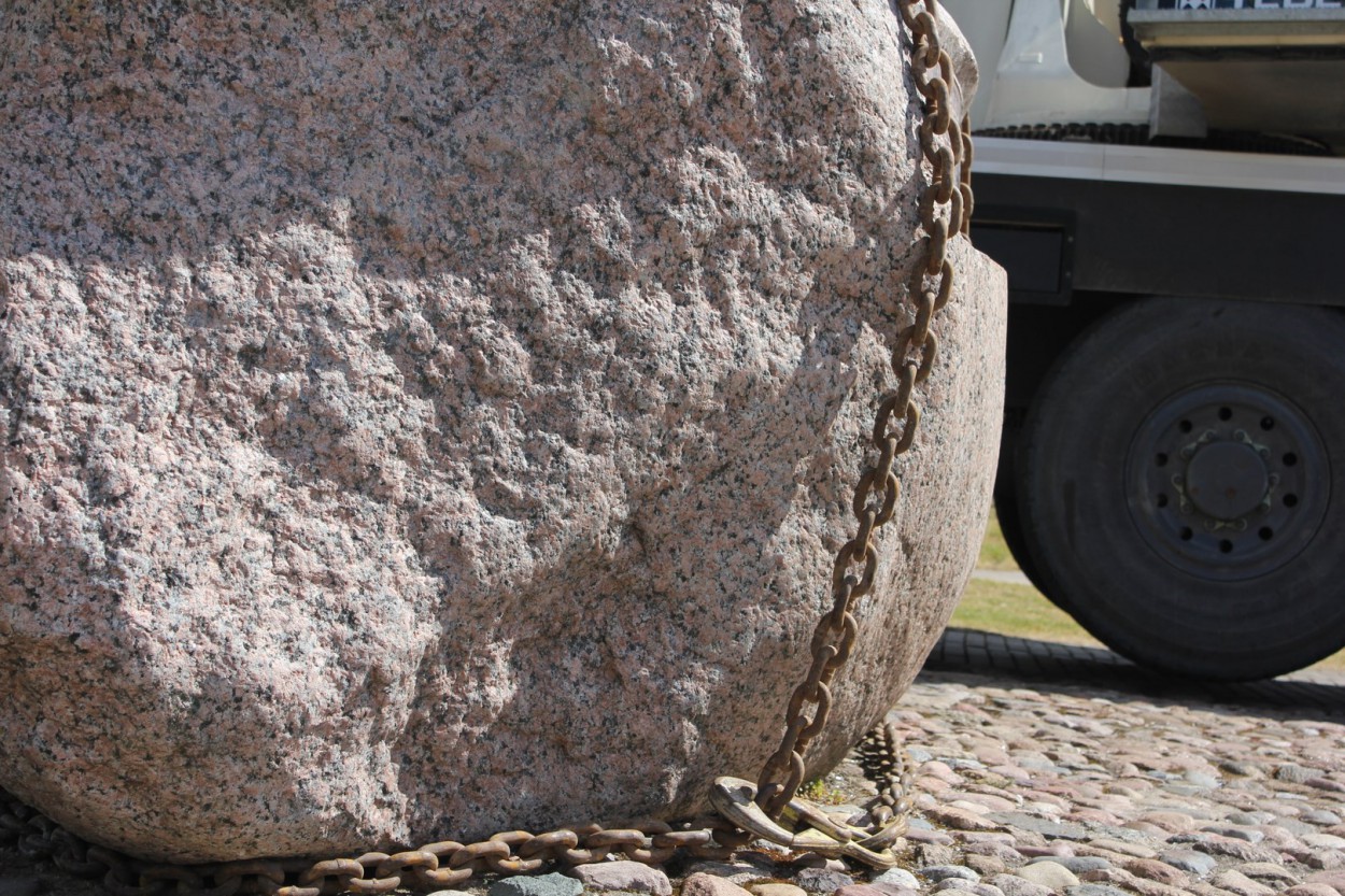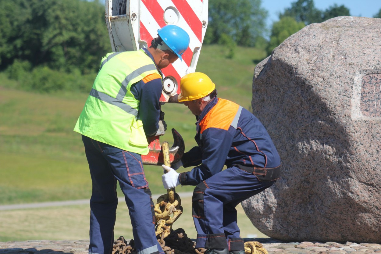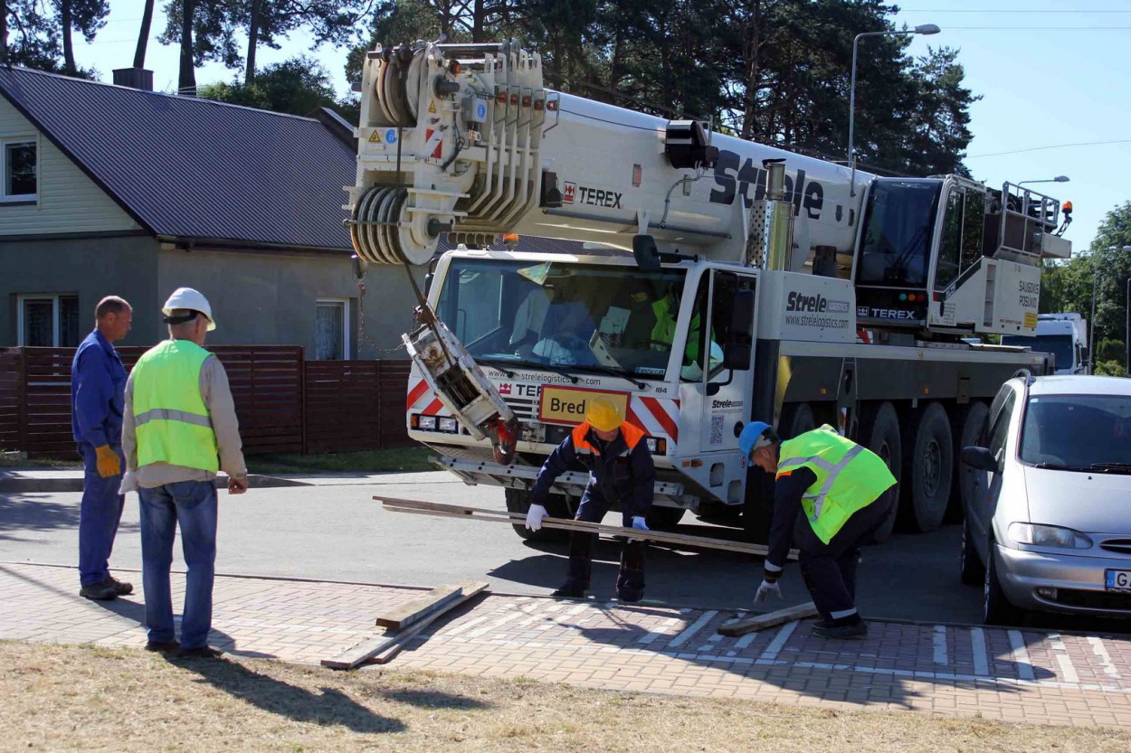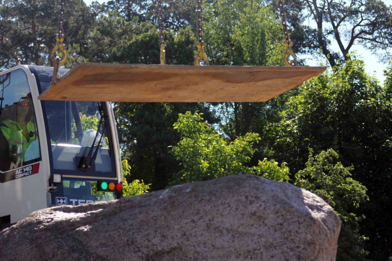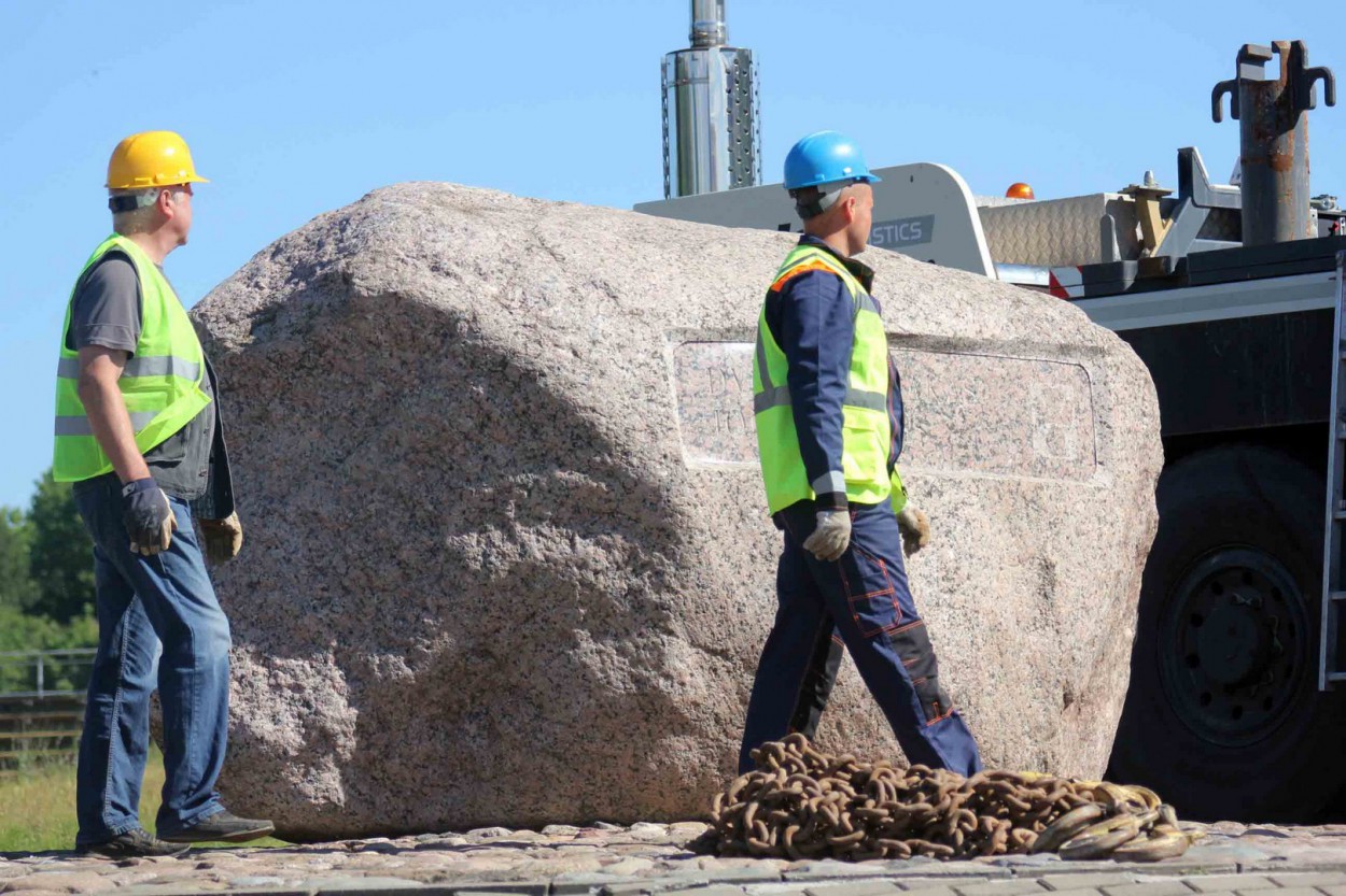 Pirmadienio rytą bendrovės „Mažeikių strėlė“ darbininkai nukėlė prie Joninių slėnio buvusį akmenį ir jį pergabeno į kitą vietą.