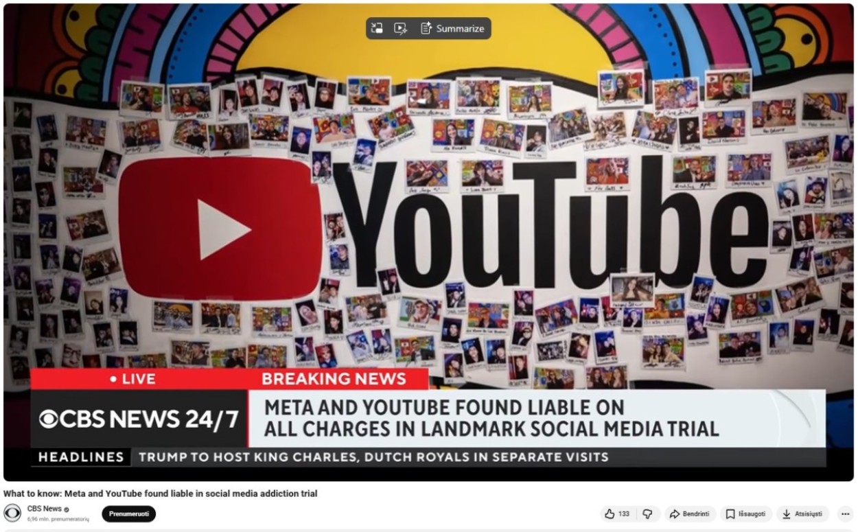 Kovo 25-ąją paskelbtas JAV teismo verdiktas: „Meta“ ir „Google“ pripažintos atsakingomis už tai, kad kūrė tokias platformas, kurios yra pavojingos vaikams ir paaugliams, praneša Skaitmeninės etikos centras. Šis sprendimas gali tapti lūžio tašku ir pagaliau priversti technologijų bendroves prisiimti atsakomybę ir, susidūrus su kaltinimais dėl vartotojų saugumo nepaisymo, vietoje gynybos imtis pastangų keisti platformą saugesnės krypties link.