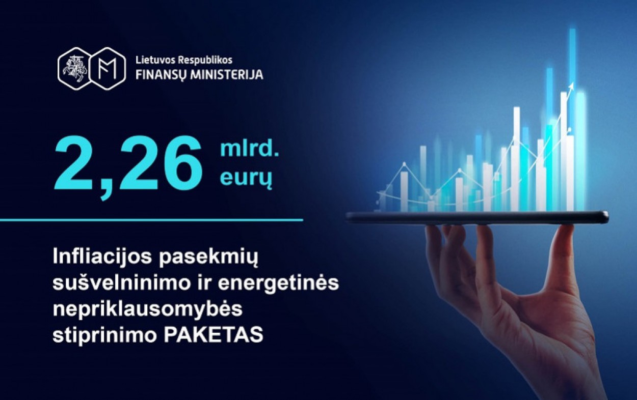 Vyriausybėje šiandien pristatytas plačios aprėpties priemonių „Infliacijos pasekmių sušvelninimo ir energetinės nepriklausomybės stiprinimo“ paketas, kuriame 2,26 mlrd. eurų skiriami amortizuoti energinį kainų šoką, didinti žmonių pajamas ir stiprinti Lietuvos energetinę nepriklausomybę. Pristatymą pradėjusi finansų ministrė Gintarė Skaistė pažymėjo, jog siūlomos priemonės orientuotos į pagalbą žmonėms, verslui bei valstybinių projektų įgyvendinimą.
