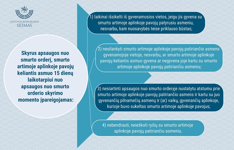 Seimas po svarstymo pritarė naujos redakcijos Apsaugos nuo smurto artimoje aplinkoje įstatymo projektui Nr. XIVP-1056(3). Nauja įstatymo redakcija siekiama valstybės lygiu mažinti smurtą artimoje aplinkoje, sustiprinant apsaugą nuo smurto artimoje aplinkoje, smurto artimoje aplinkoje prevenciją bei specializuotos kompleksinės pagalbos teikimą smurto artimoje aplinkoje pavojų patiriantiems asmenims ar smurtą artimoje aplinkoje patyrusiems asmenims.