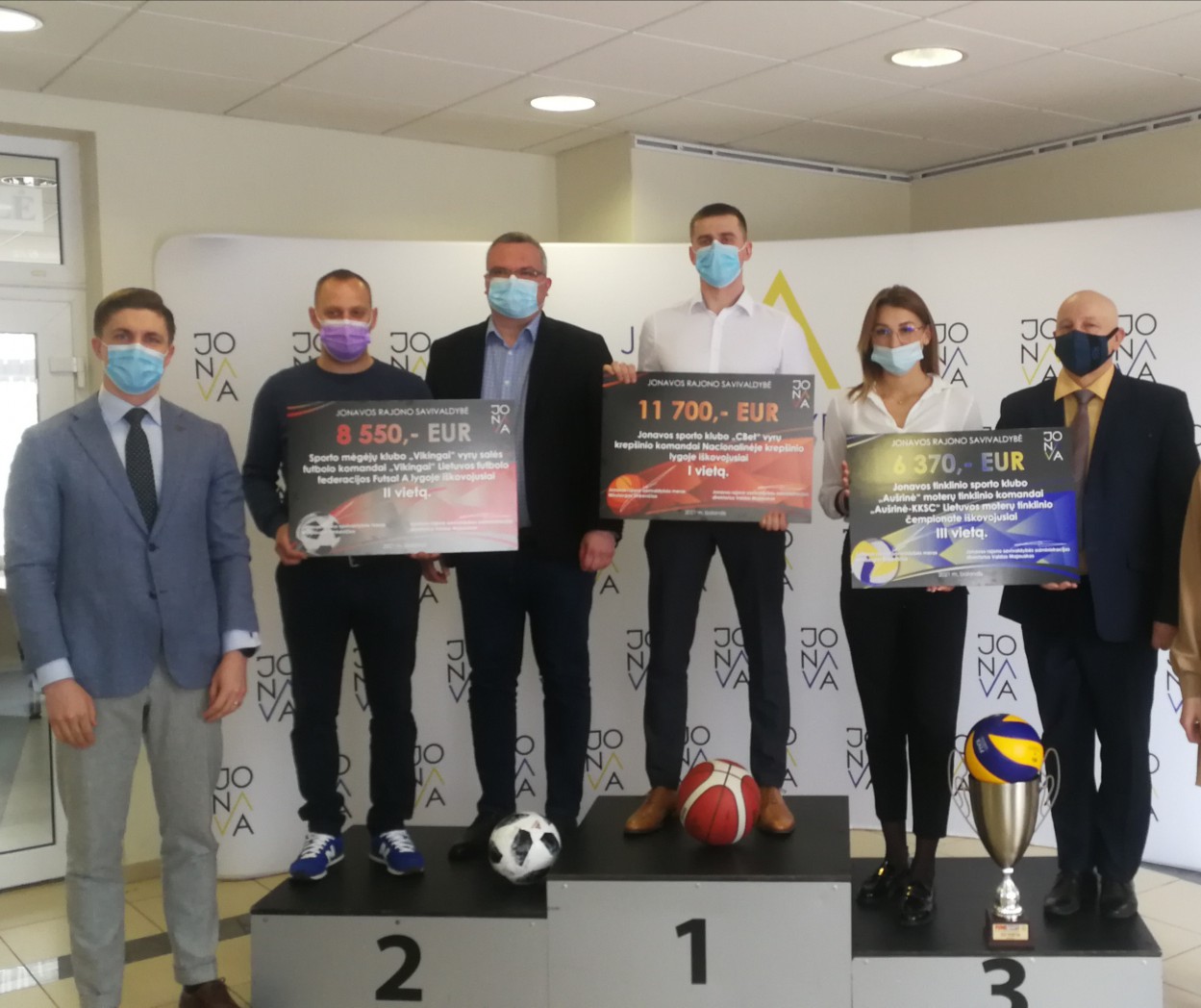 Jonavos rajono savivaldybėje penktadienį pasveikinti ir piniginėmis premijomis apdovanoti rajono sporto klubai, Lietuvos čempionatuose užėmę prizines vietas.