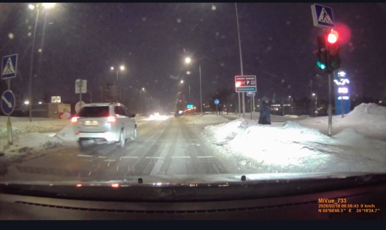 Jonaviečio vaizdo registratorius užfiksavo pavojingą situaciją, kuri galėjo baigtis skaudžia nelaime. Vyras, pageidavęs likti anonimu, pasidalijo vasario 18-osios ryto įrašu iš Žeimių gatvės.